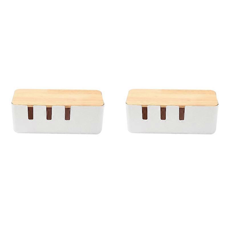 2X Cable Organizer Box Hard Plastic Desk Cable Management Box with Holder Wood Color Cover for Home Cable Winder Storage