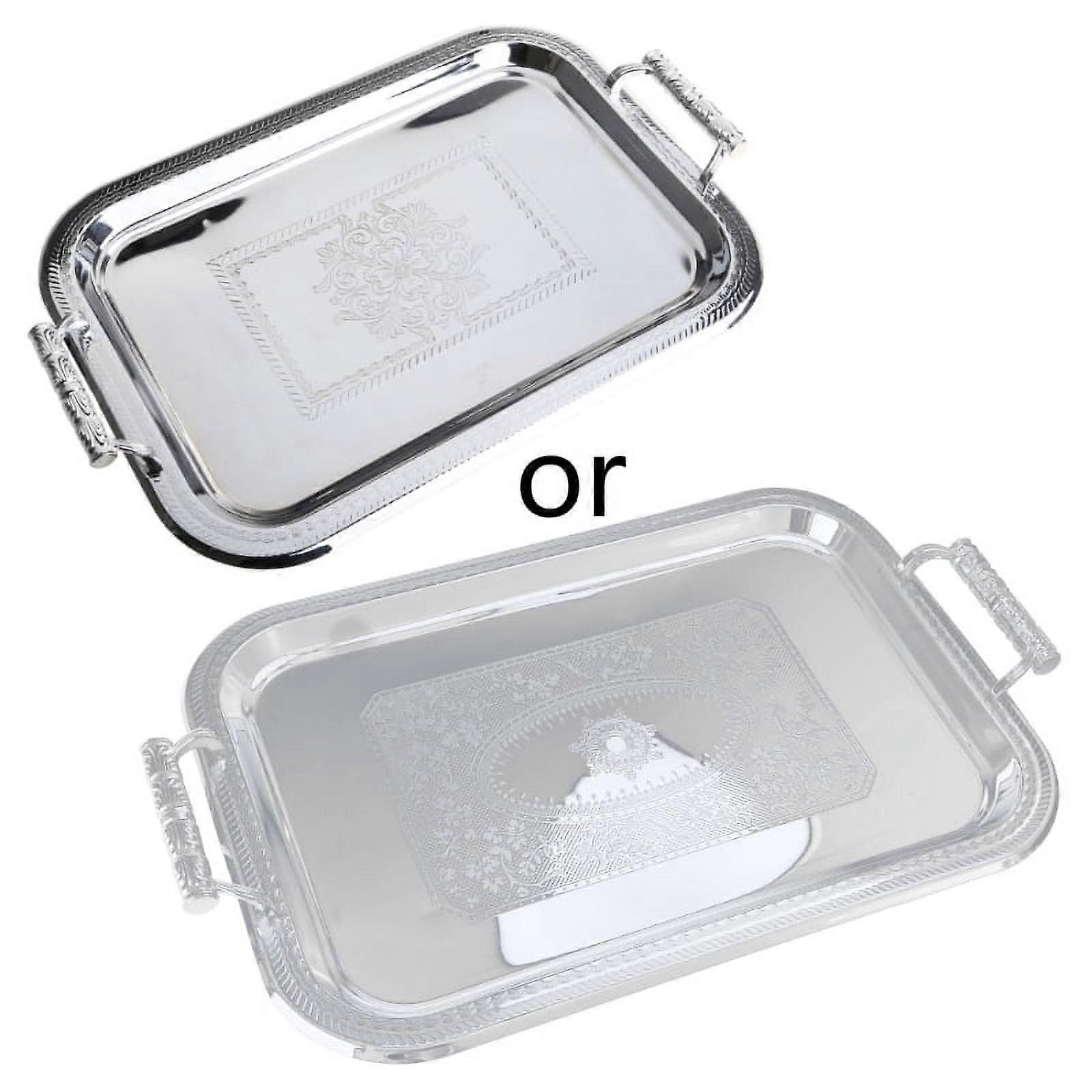 JZROCKER Nordic Stainless Steel Serving Tray with Handles Elegant Rectangular Coffee Bar Food Holder Dessert Display Plate Decor