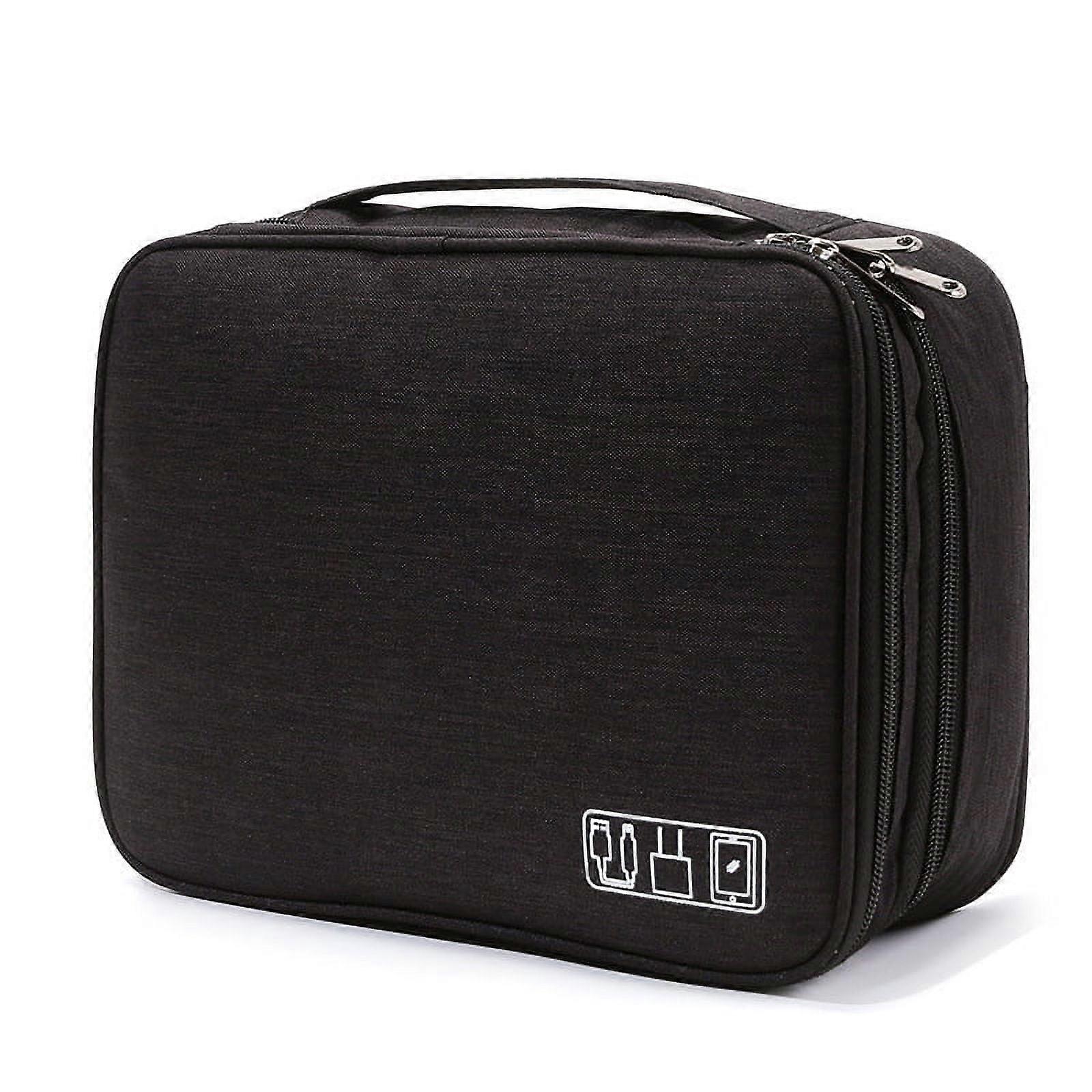 LARGE CAPACITY --- Accessory bag size L 11.02"" x W 8.26"" x H 3.54"", multifunction electronic bag with 3 layers, and delivered with 2 free data cable sleeves. Exquisite and lightweight, easy to carry, very suitable for traveling. can put cables, memory cards, hard drives, mobile power supply, USB cables, scissors, mini cameras and phones. ADJUSTABLE MODEL --- Top accessory bag features elasticated straps and mesh pockets. Mesh bag prevents chafing and scratches between items. Three adjustable cushion dividers allow you to freely adjust the position and size of the lower bracket to take full advantage of each space. Accessory bags keep your items tidy and organized, allowing you to find the ones you need in less than a second. EXCELLENT EQUIPMENT --- Electronic bag adopt cationic material, waterproof surface treatment to protect your objects from water. Wear resistant, easy to clean. Electronic bag color fastness up to 4 levels, not difficult to fade, durable, soft mat can protect your items from collisions. THE DETAILS ARE PERFECT --- We are committed to providing you a pleasant experience. Cable bag The design of rounded edges, not easily deformable, increases the space. The accessory pouch has a double zipper design, can be opened and closed freely, the portable handle is sturdy and durable, excellent data storage. SAVE SPACE --- When you travel in your daily life or in your travel bag or your suitcase, Accessories Bag has provide large space,can easily fit into any backpack or handbags, durable, soft mat can protect your items from collision. -Due to different producing batches, product details might be a little different. -Please allow 1-3CM differs due to manual measurement. (1 inch=2.54 cm,1 cm=0.39 inch) -Due to the different display and different light, the picture may not reflect the actual color of the item.