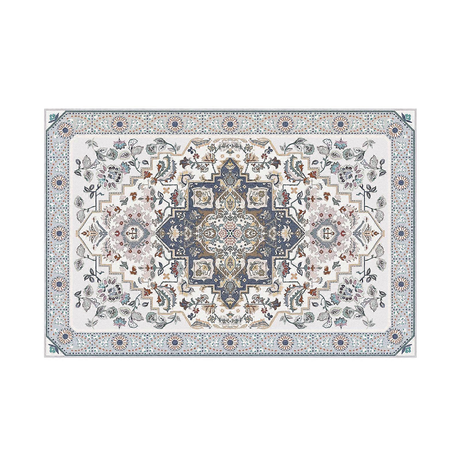 Vintage Ethnic Area Rugs, Classical Badge Washable Non-Slip Rug for Bedroom, Dining Room, Living Room, 4 x 6 ft, Blue, 1 Pack