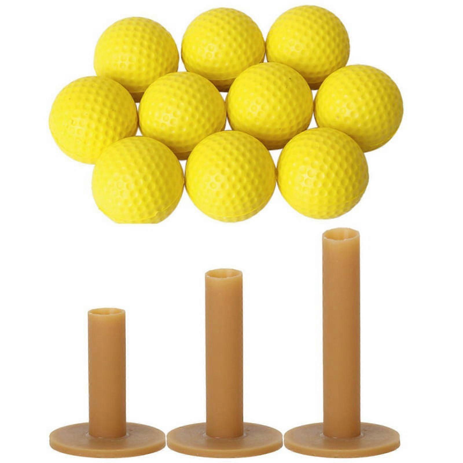 10Pcs Yellow Soft Elastic Indoor Practice PU Golf & 3x Golf Tees Coffee Tee Driving Range 60/ 70/ 80 mm
