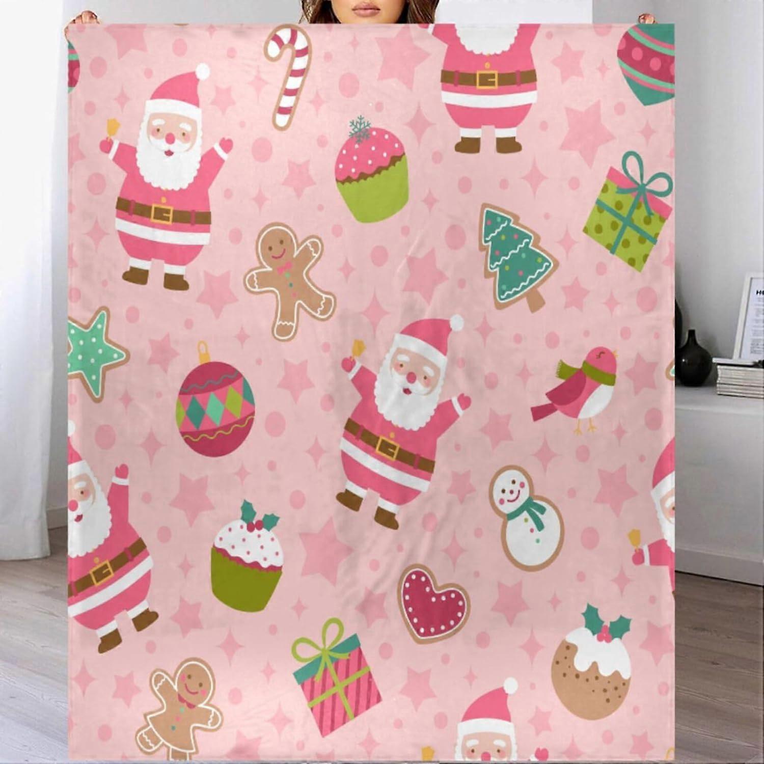 Cute Santa Claus Pink 50x60" Throw Blanket - Soft Cozy Flannel Fleece, Lightweight Warm Fuzzy Blanket for Couch, Bed, Chair