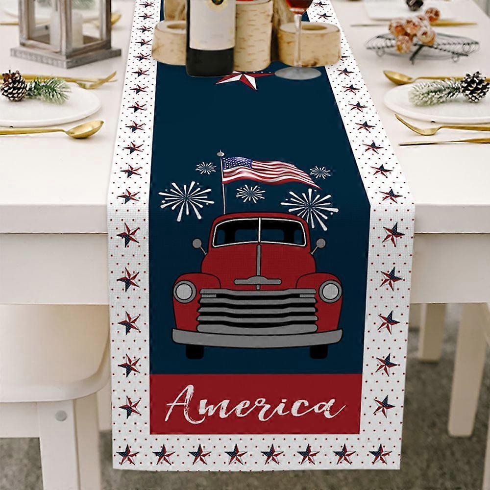 July 4th Patriotic Table Runner, 13x70 Inch Stars & Stripes Linen Decor for Independence Day, Memorial Day, Compatible with Farmhouse Rustic Home