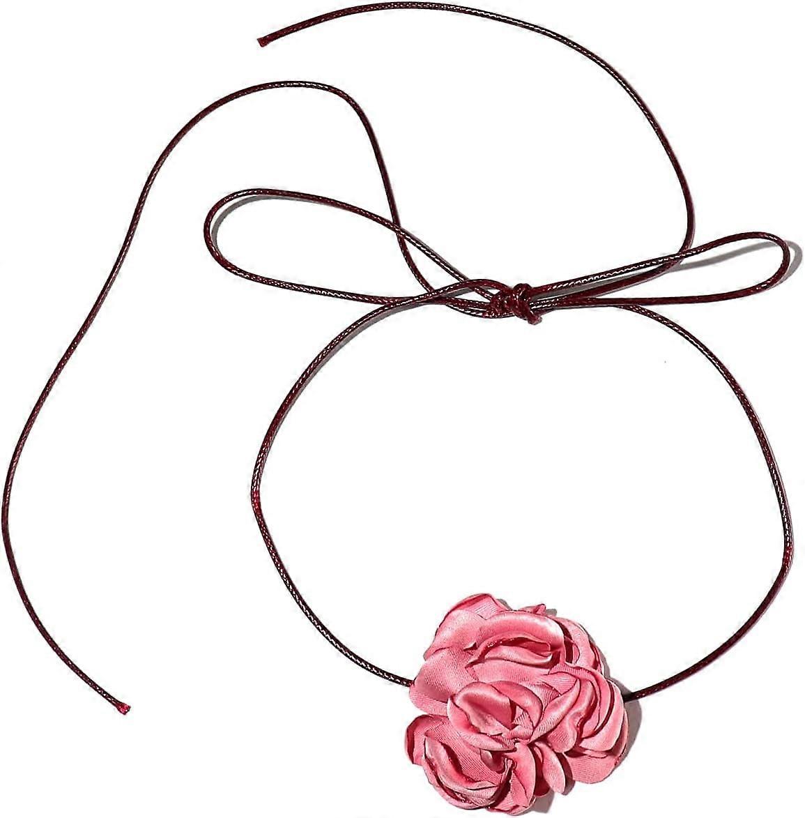 NANAHuang Elegant Camellia Flower Lace-up Choker Necklace Vintage Black Rose Red Pink Soft Sexy Velvet Choker Necklace Party Birthday Gifts for Women