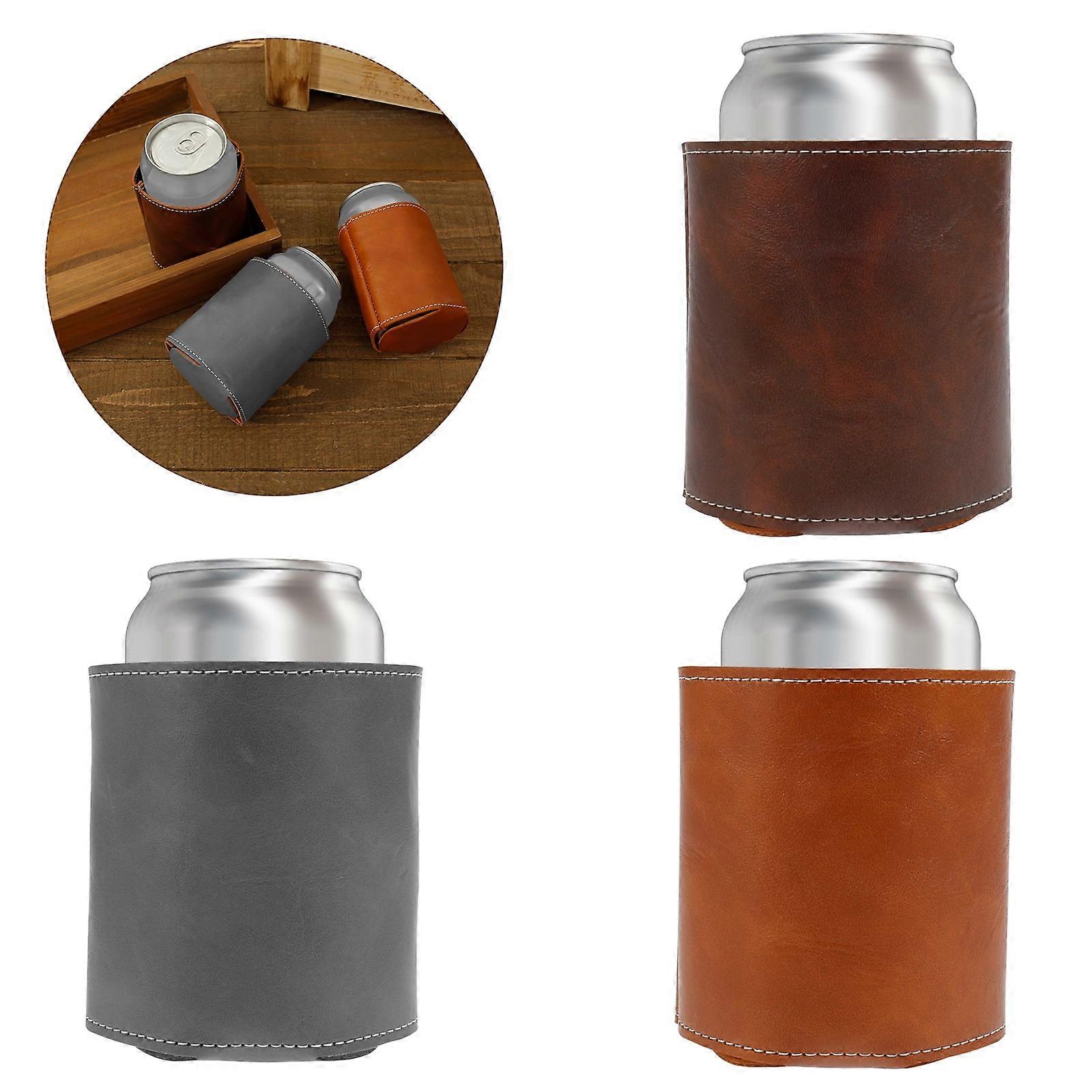 3Pcs Can Cooler Sleeve 12oz PU Leather, Non-Slip Beer Can Covers Compatible with Soda Cans, Bottles for Picnic, Party