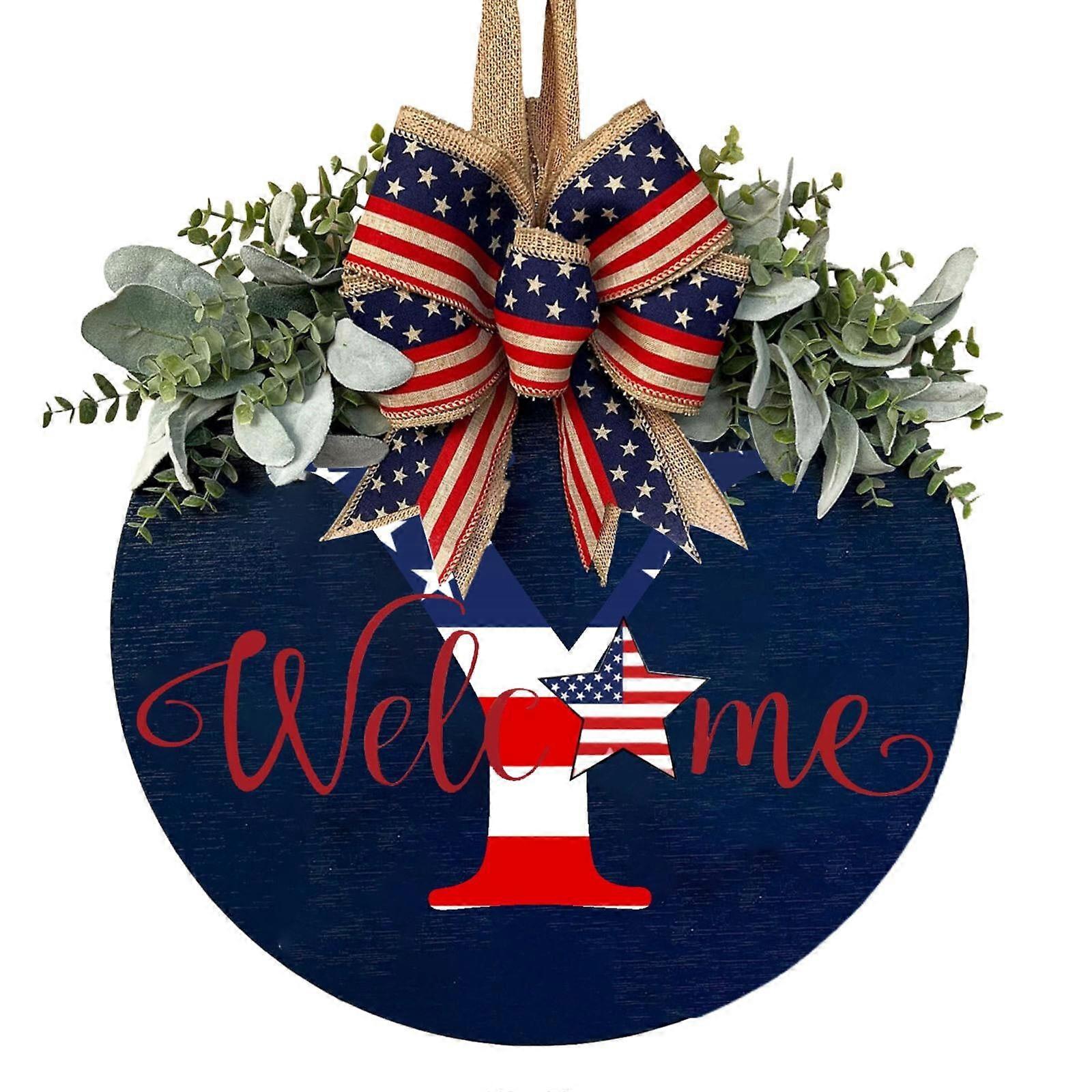 WRXMIJNHGSA 2024 A-Z New Surnames Independence Day Front Door Garland, Farmhouse Welcome Sign with Garland Bow, Compatible with Yard Door Decor