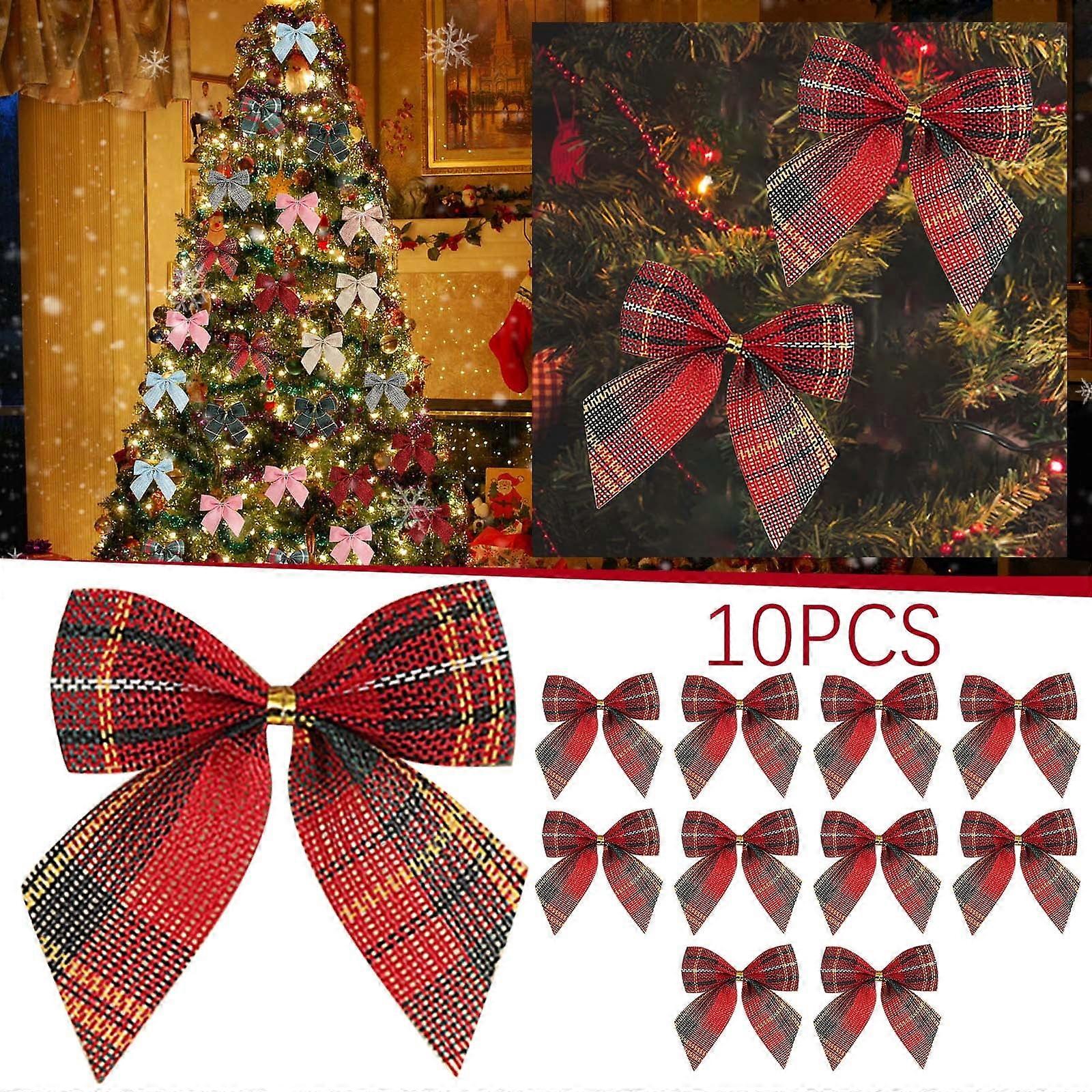 HANXIULIN 10Pcs Christmas Bows, Fabric Tree Garland Decor, Assorted Styles, Red Party Decoration