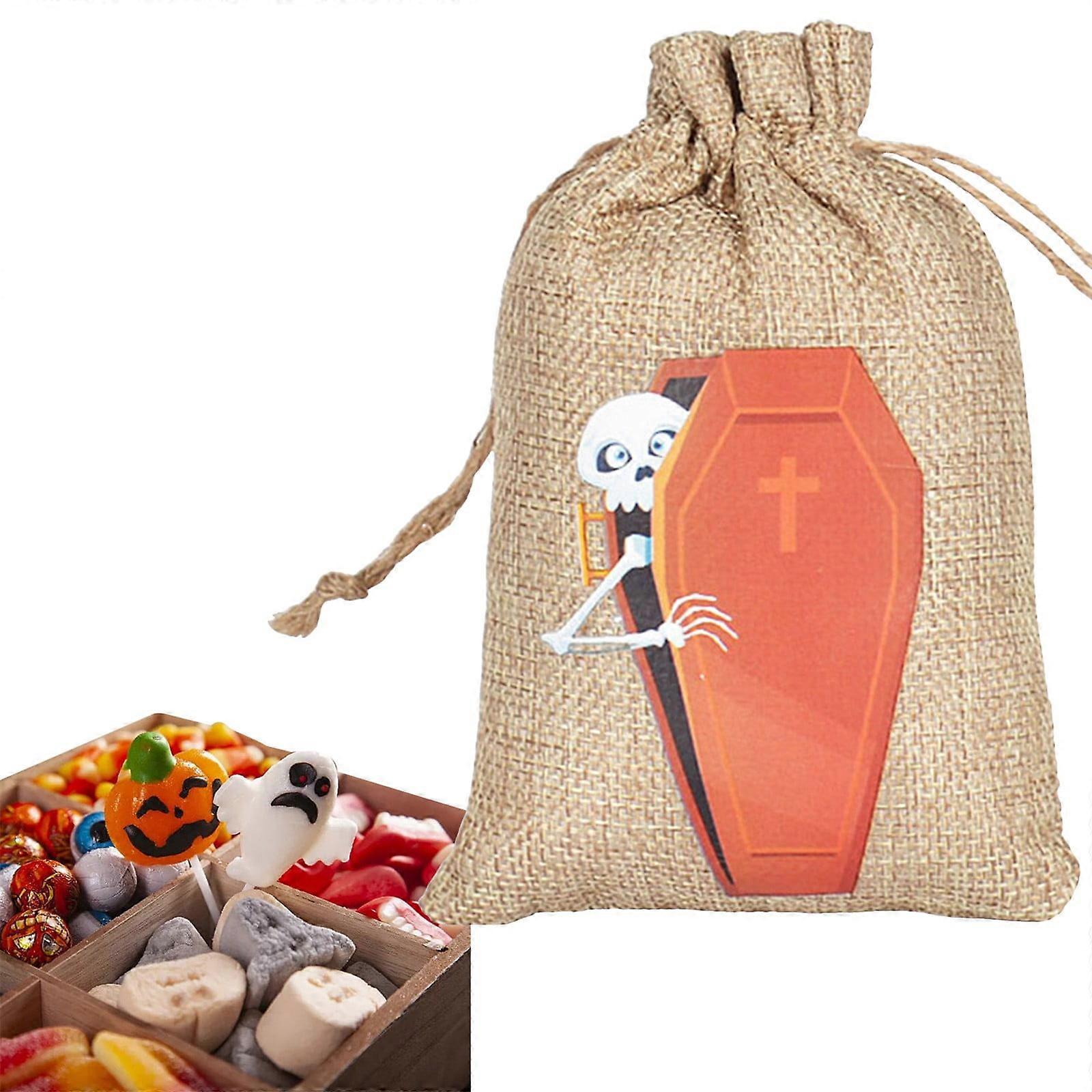 Halloween Burlap Gift Bags Trick Or Candy Goodie Bags Small Halloween Linen Jute Bags For Kids Party Favors For Kids 4-8
