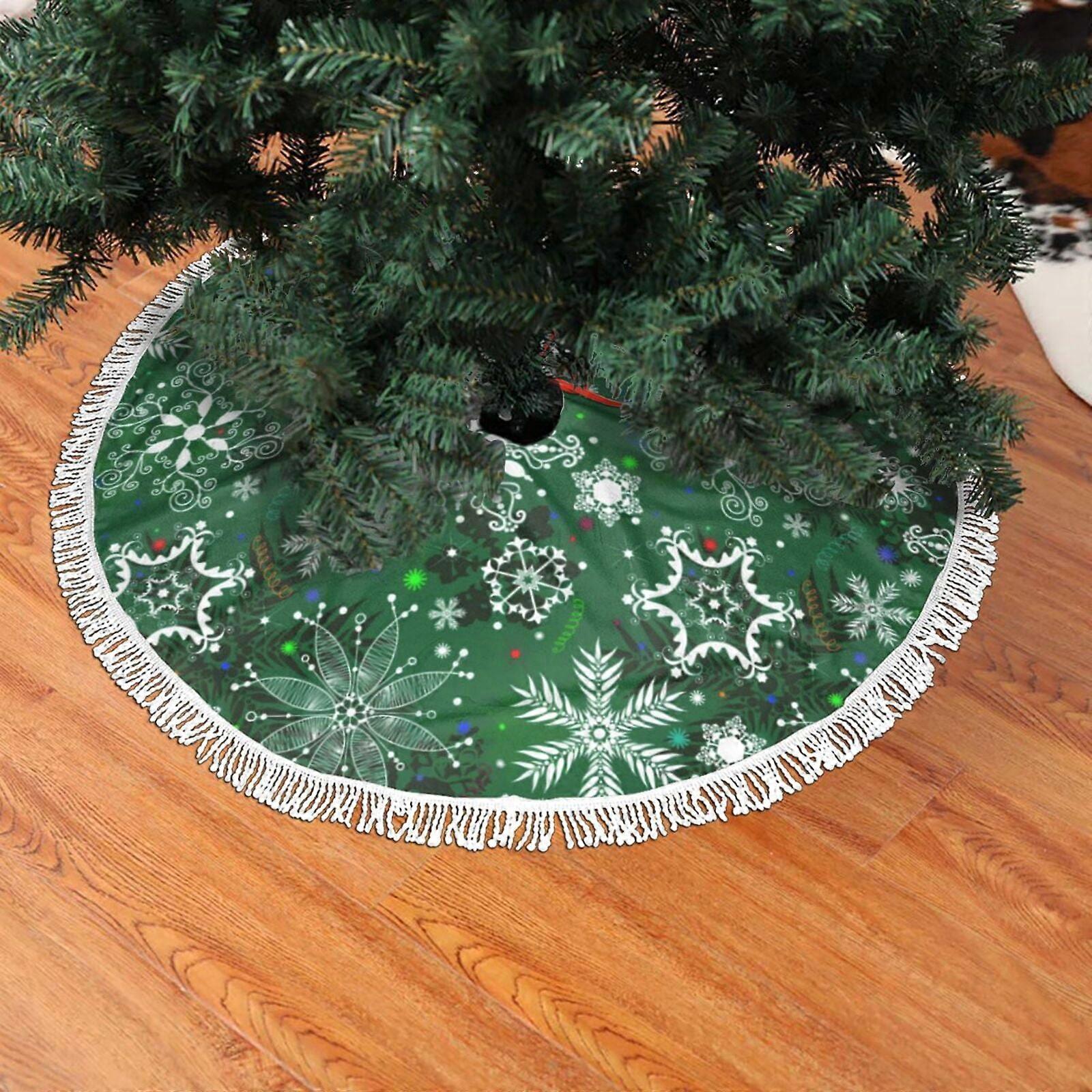 Christmas Fringed Lace Tree Skirt, Green Christmas Snowflake Pattern Soft, Light, Good Touch Tree Skirt 30"
