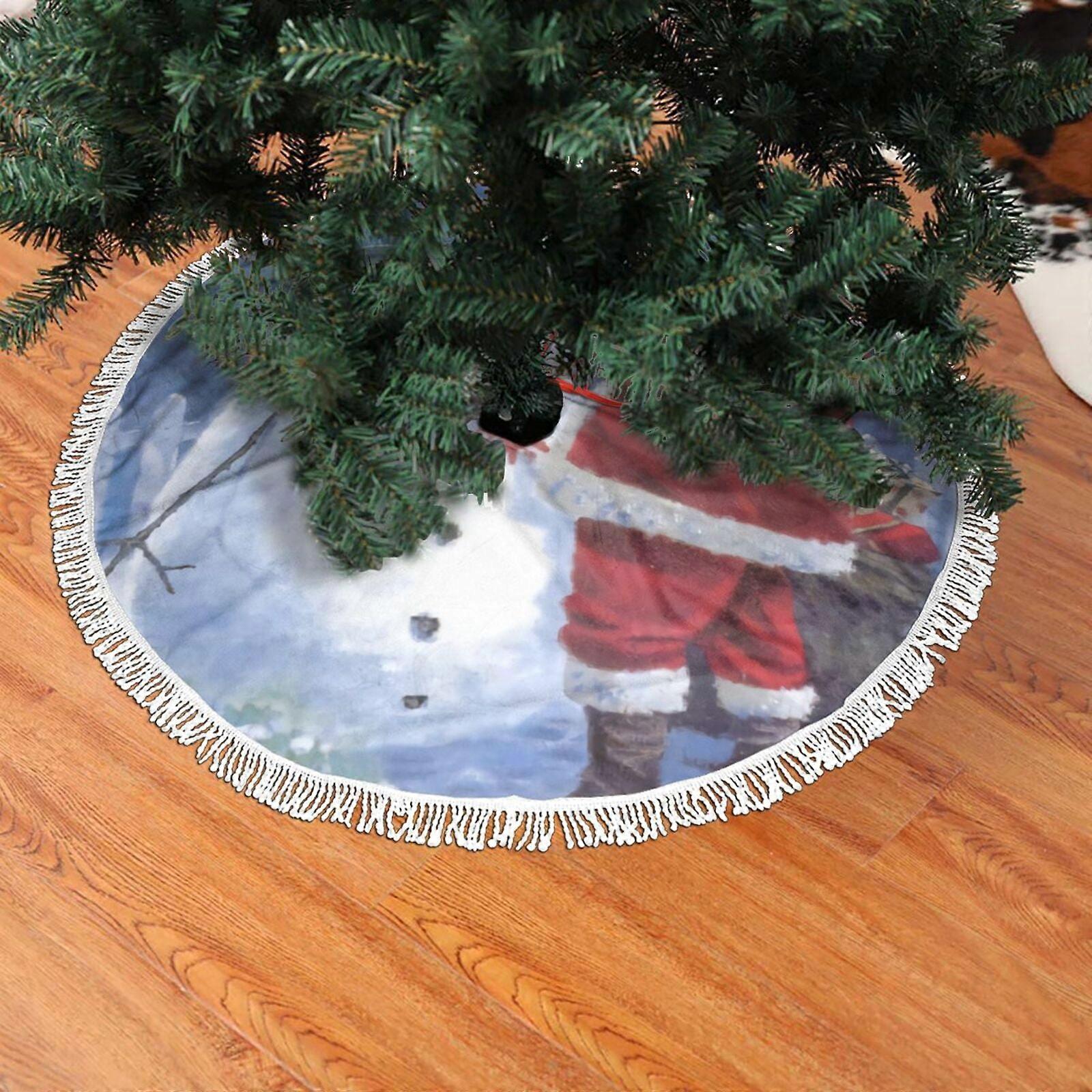 Christmas Fringed Lace Tree Skirt, Santa Claus And Snowman Soft, Light, Good Touch Tree Skirt 36"