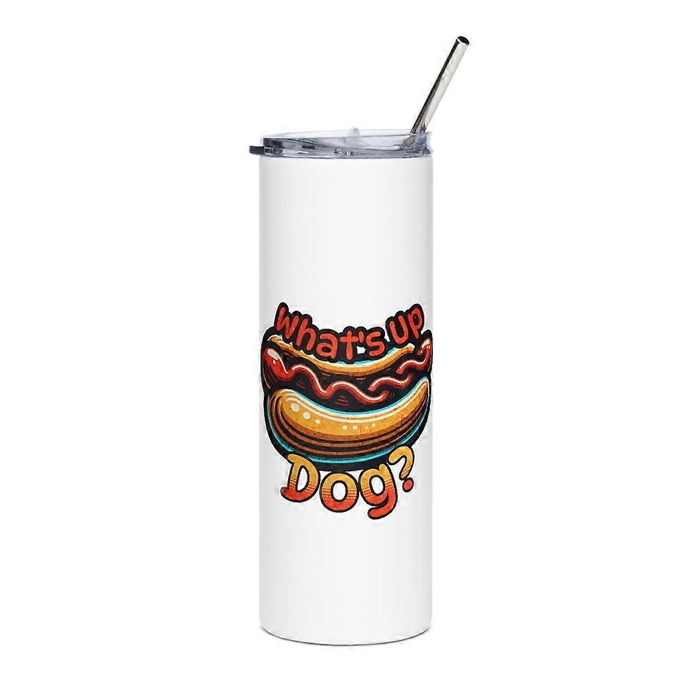 Funny Hot Dog Skinny Slim Tumbler, What's Up Dog (White)