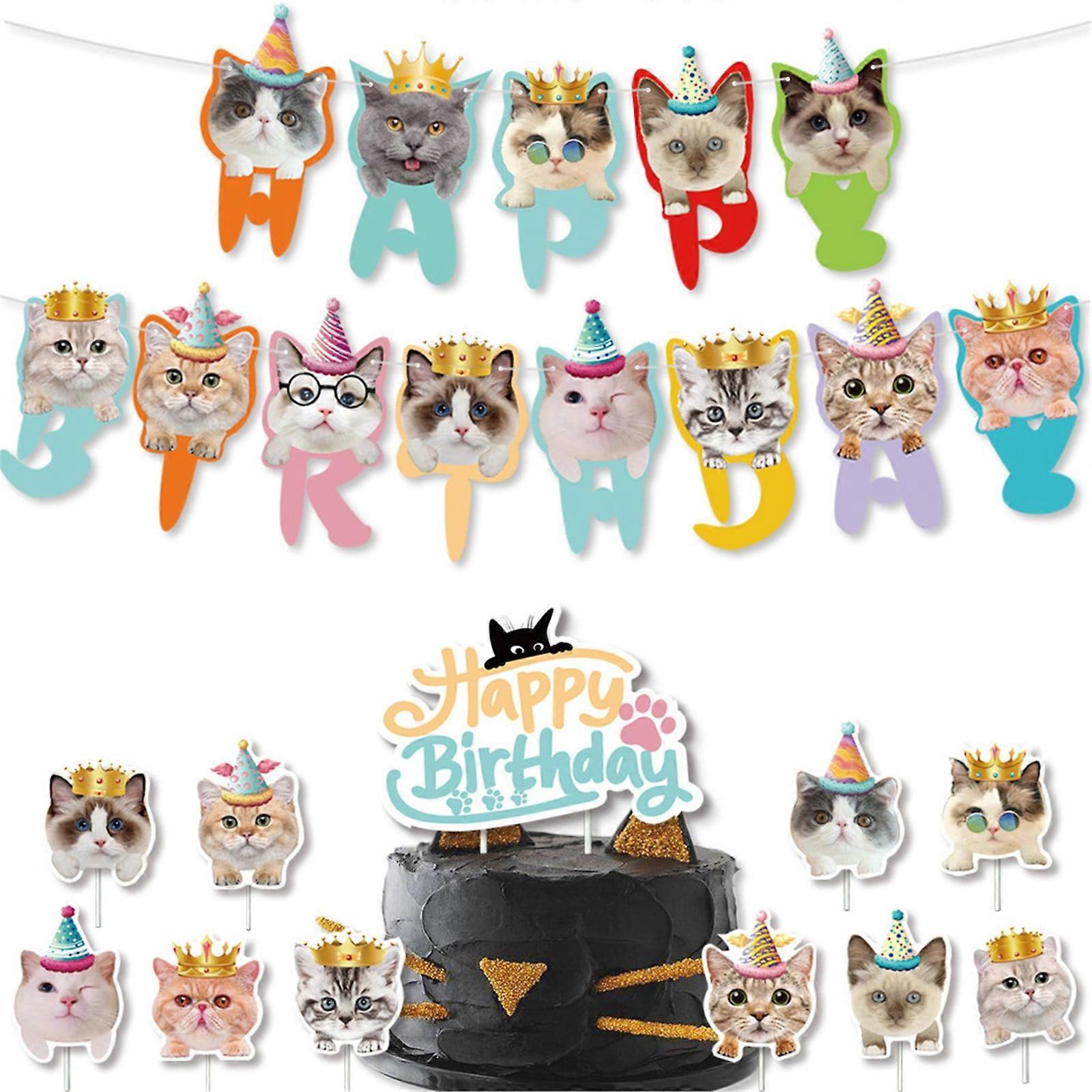 Cat Faces Birthday Banner Garland, Hanging Swirl Decor for Pet Cat Theme Party, Kitties Baby House Party Decoration