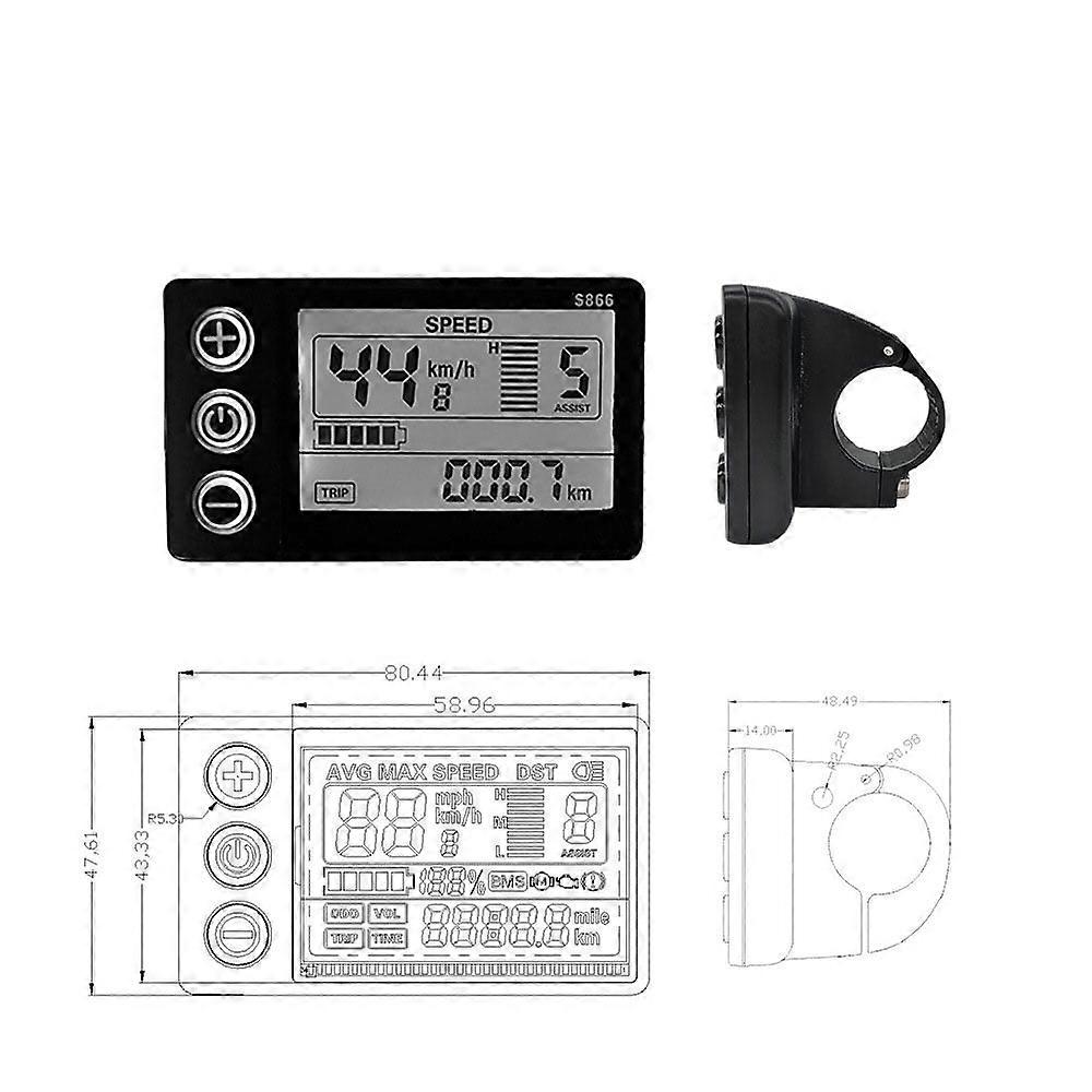 LCD Display S866 Speedometer for E-bike 24V 36V 48V Waterproof Meter Panel compatible with 36V 48V E-bike