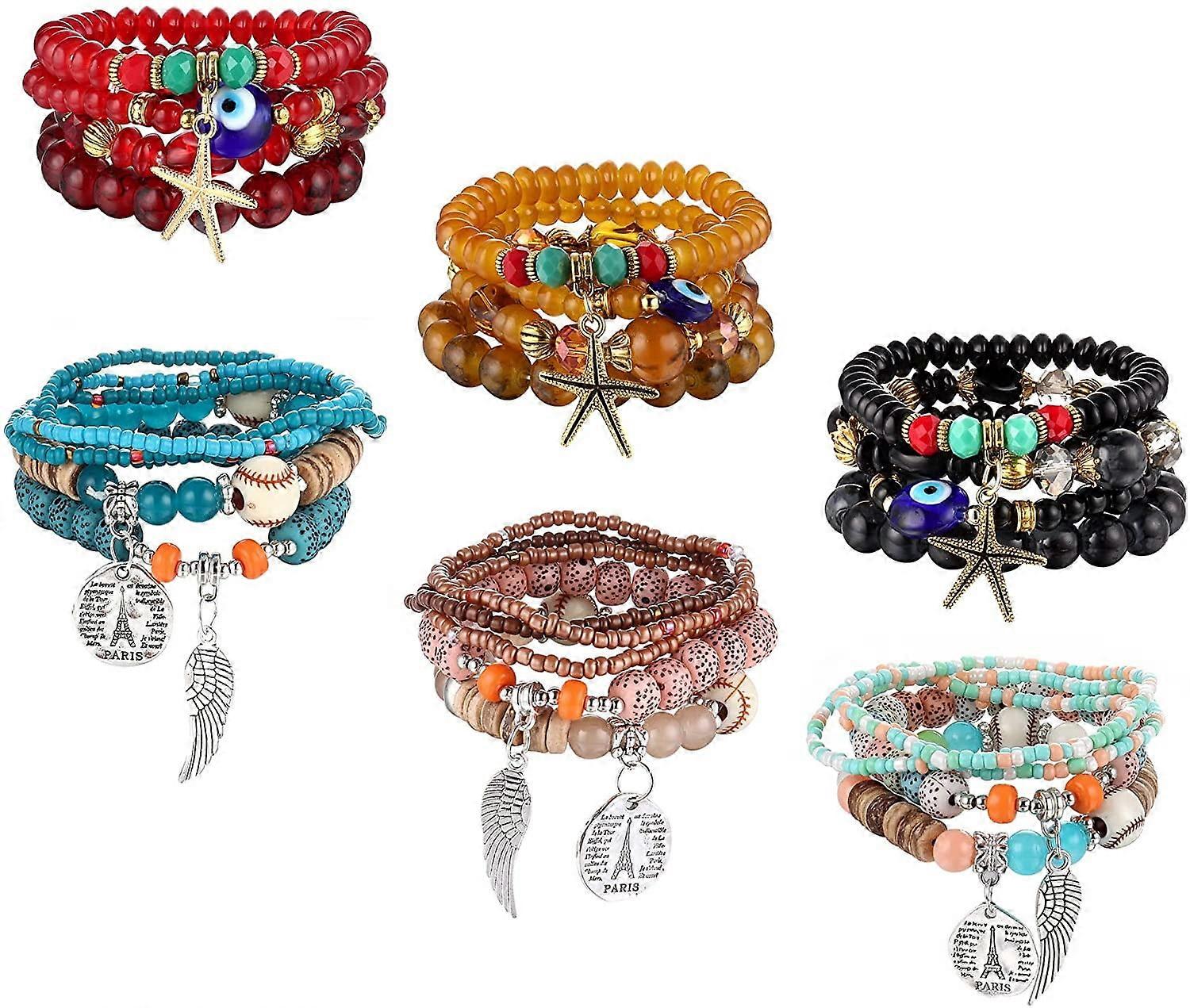 Jstyle 6 Sets Bohemian Stackable Bead Bracelets for Women Men Stretch Multi Layered Bracelet Set Multicolor Jewelry