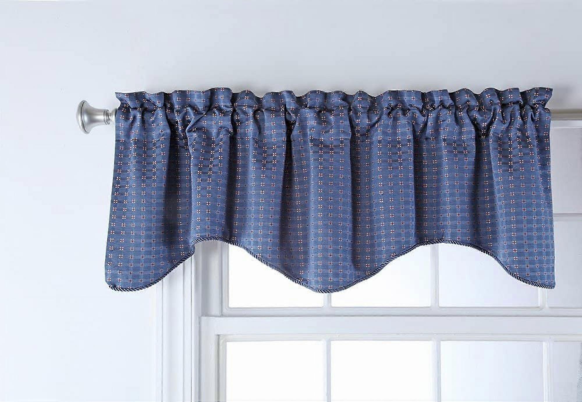 2pcs Home Products Renaissance Home Fashion Boxwood Lined Scalloped Valance with Cording, 52 by 17-Inch, Marine