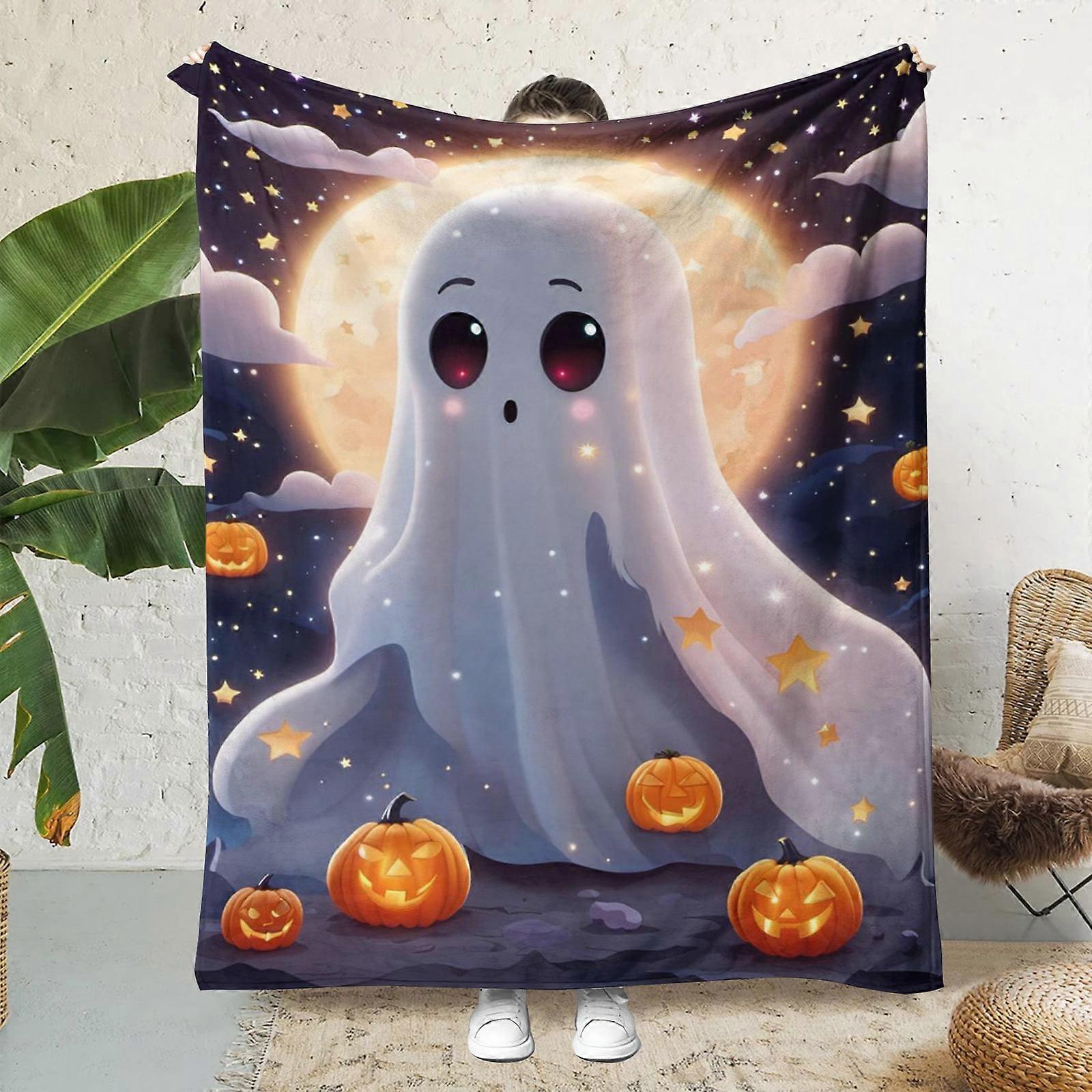 Halloween Pumpkin Throw Blankets Funny Ghost Cute Spooky Lightweight Cozy Flannel Blanket for Bedroom Living Rooms 30*40 H-10