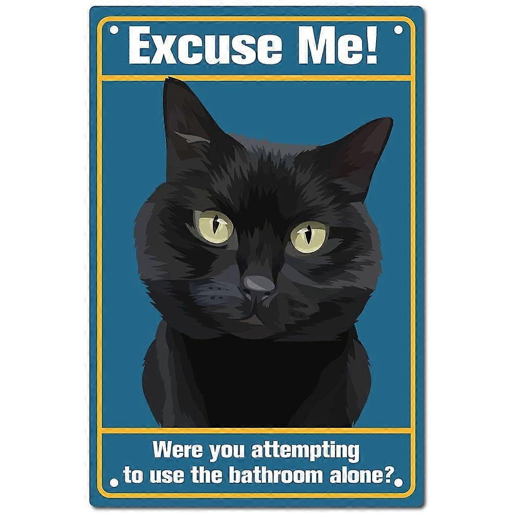 1pc Funny Bathroom Signs Cat Tin Sign Metal Vintage Plaque Poster Wall Art for Bathroom Restroom Decor Home Coffee Restaurant Bar Sign 8 x 12 Inch