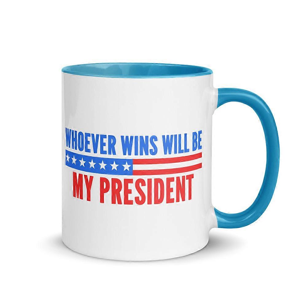 Cool Neutral Political Quote Mug with Color Inside, Whoever Wins Will Be My President (Blue, 11 oz)