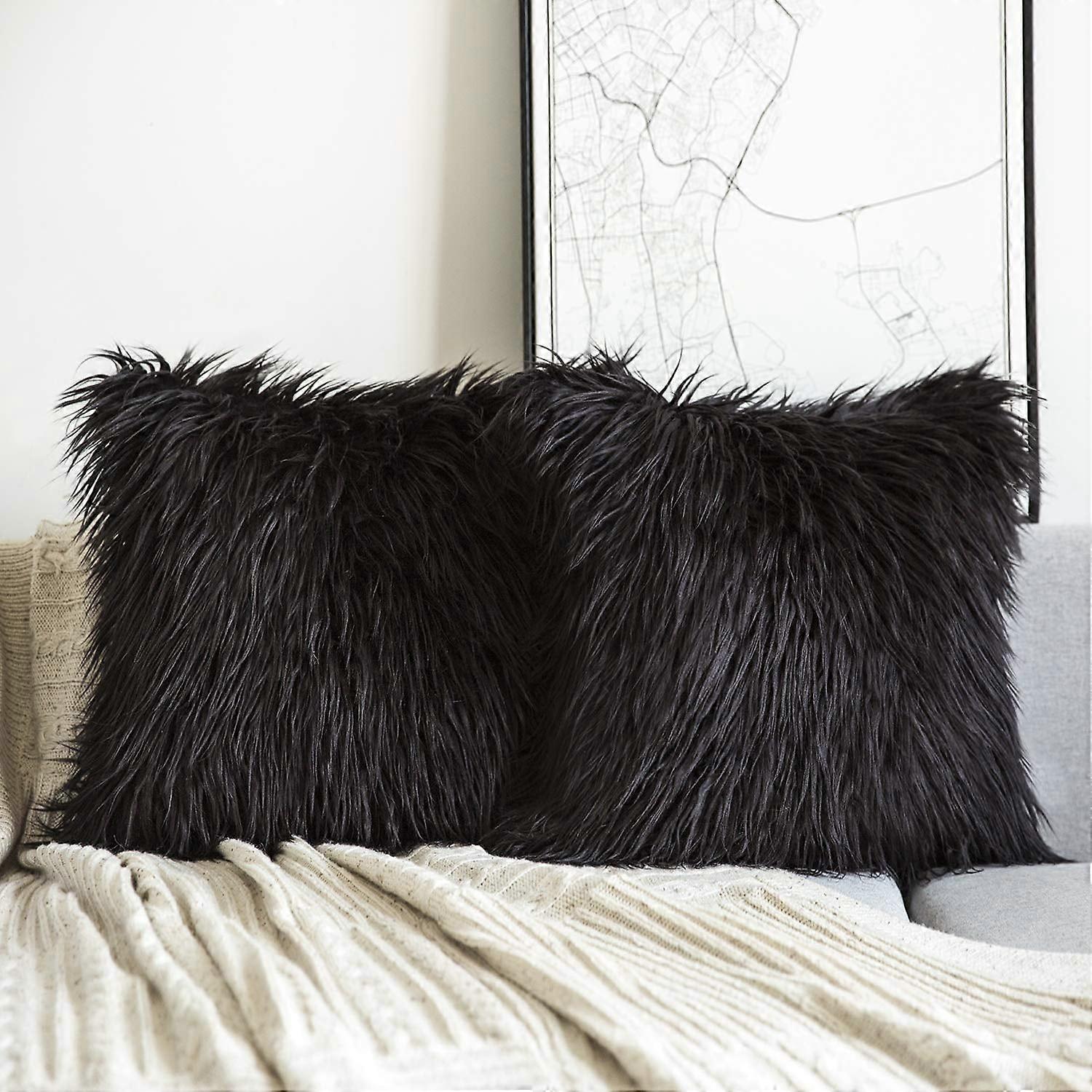 Phantoscope Merino Style Faux Fur Series Decorative Throw Pillow Cover, 18" x 18", Black, 2 Pack