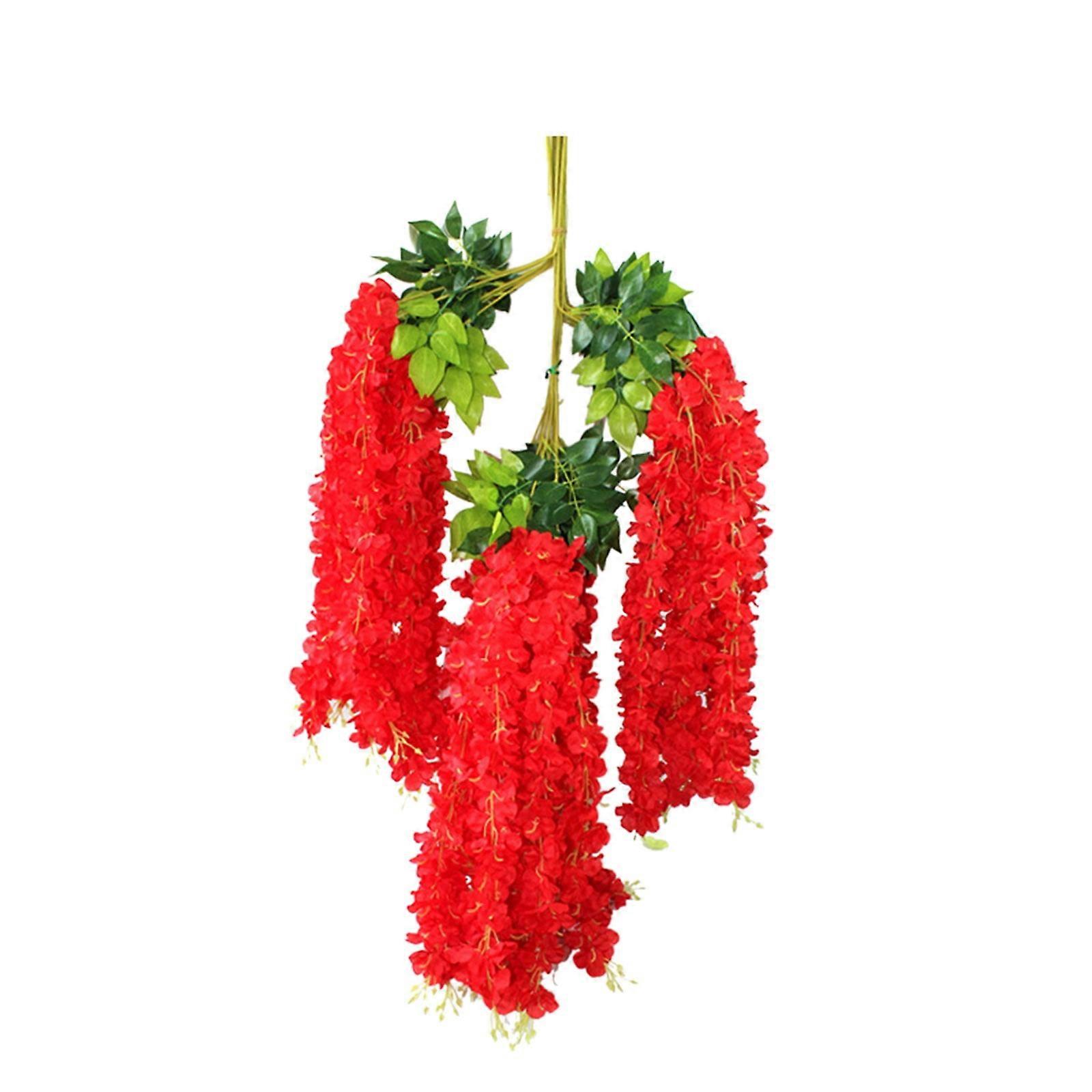 Clearance! Eguiwyn Artificial 12 Pieces (Each 45Inch) Wisteria Artificial Flower Bushy Silk Vine Ratta Hanging Red