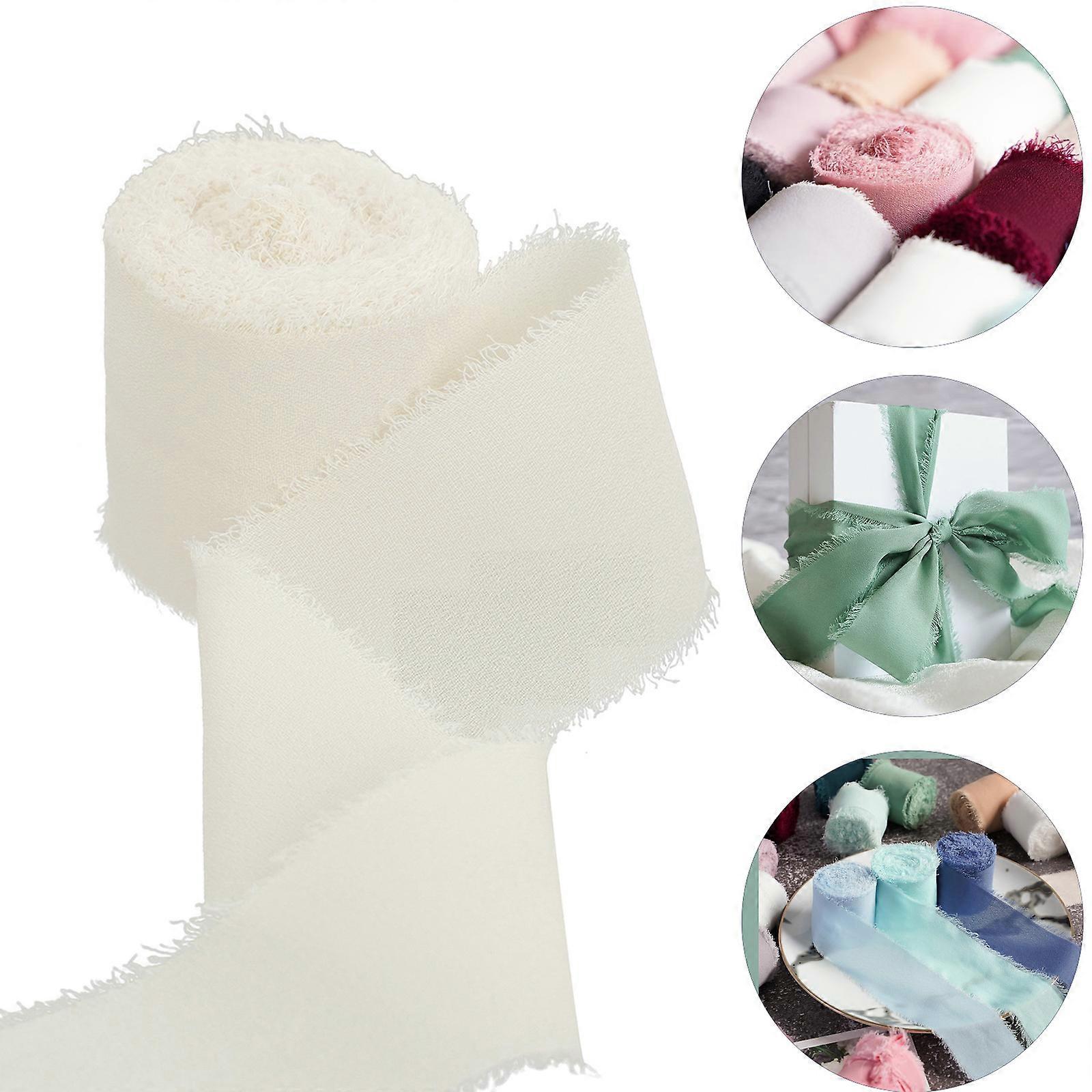 Seewan 3 Rolls Chiffon Silk Ribbon 1.5"x5yd Eco-Friendly Fringe Fabric for Wedding, Bouquets, Gifts Wrapping & Bow Making