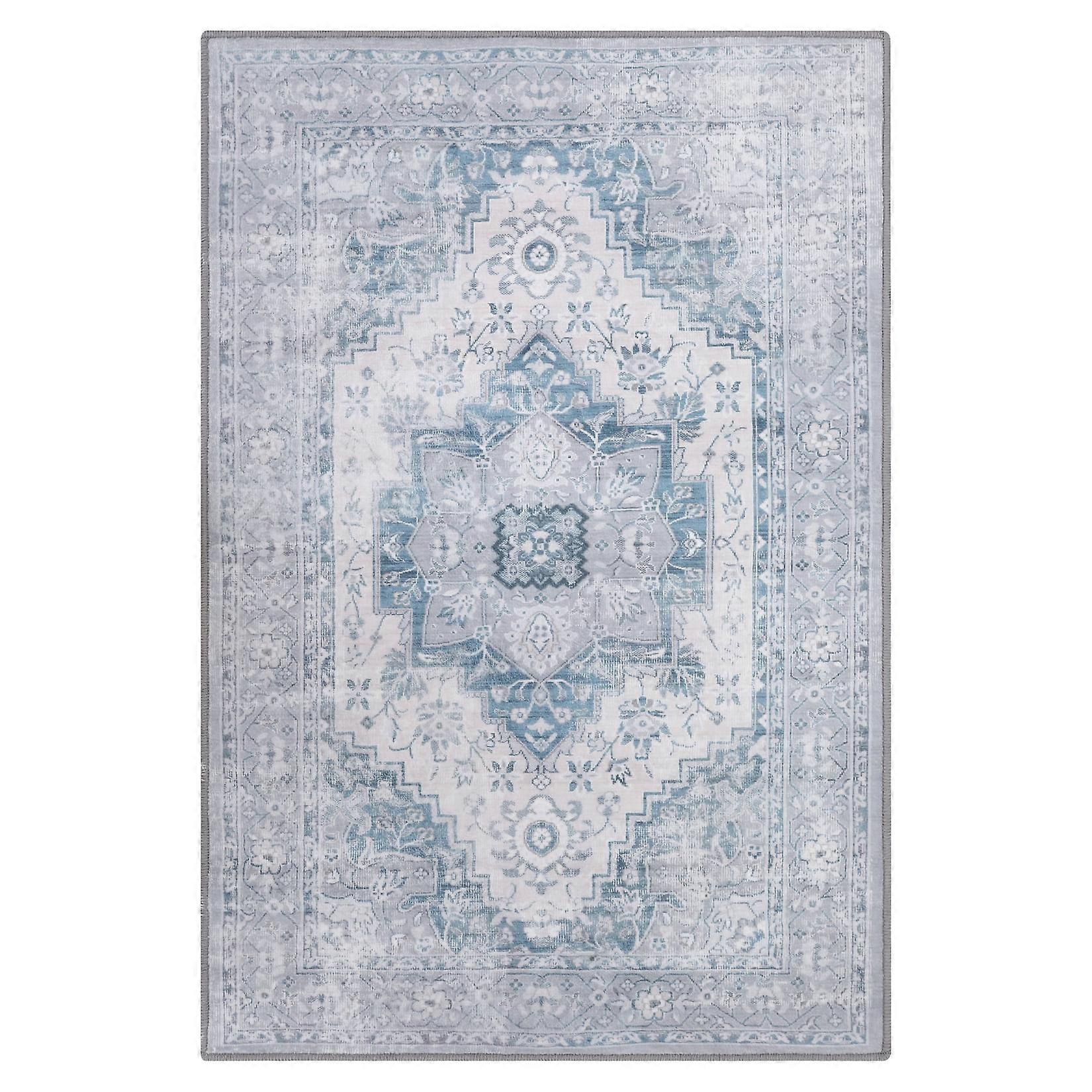Haperlare Vintage Medallion Area Rug 4x6 FT Boho Distressed Indoor Non-Slip Rug for Living Room Bedroom Kitchen, Blue/Gray