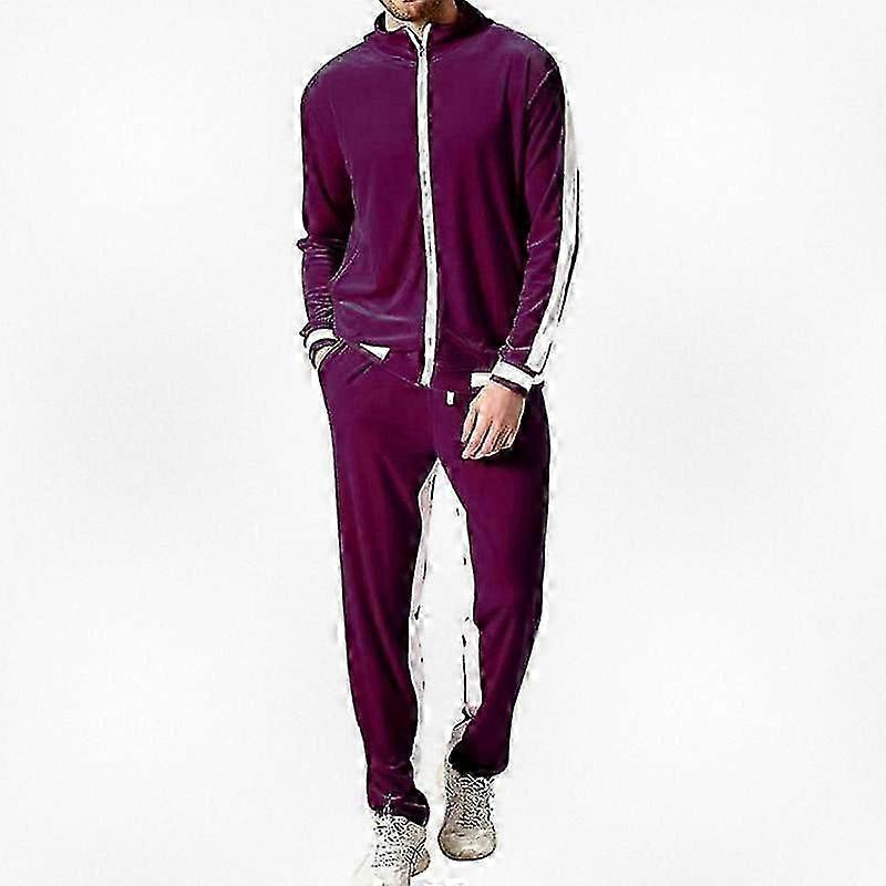 Men's Soft Velvet 2-Piece Tracksuit Set with Full Zip Casual Sportswear OutfitZZ36
