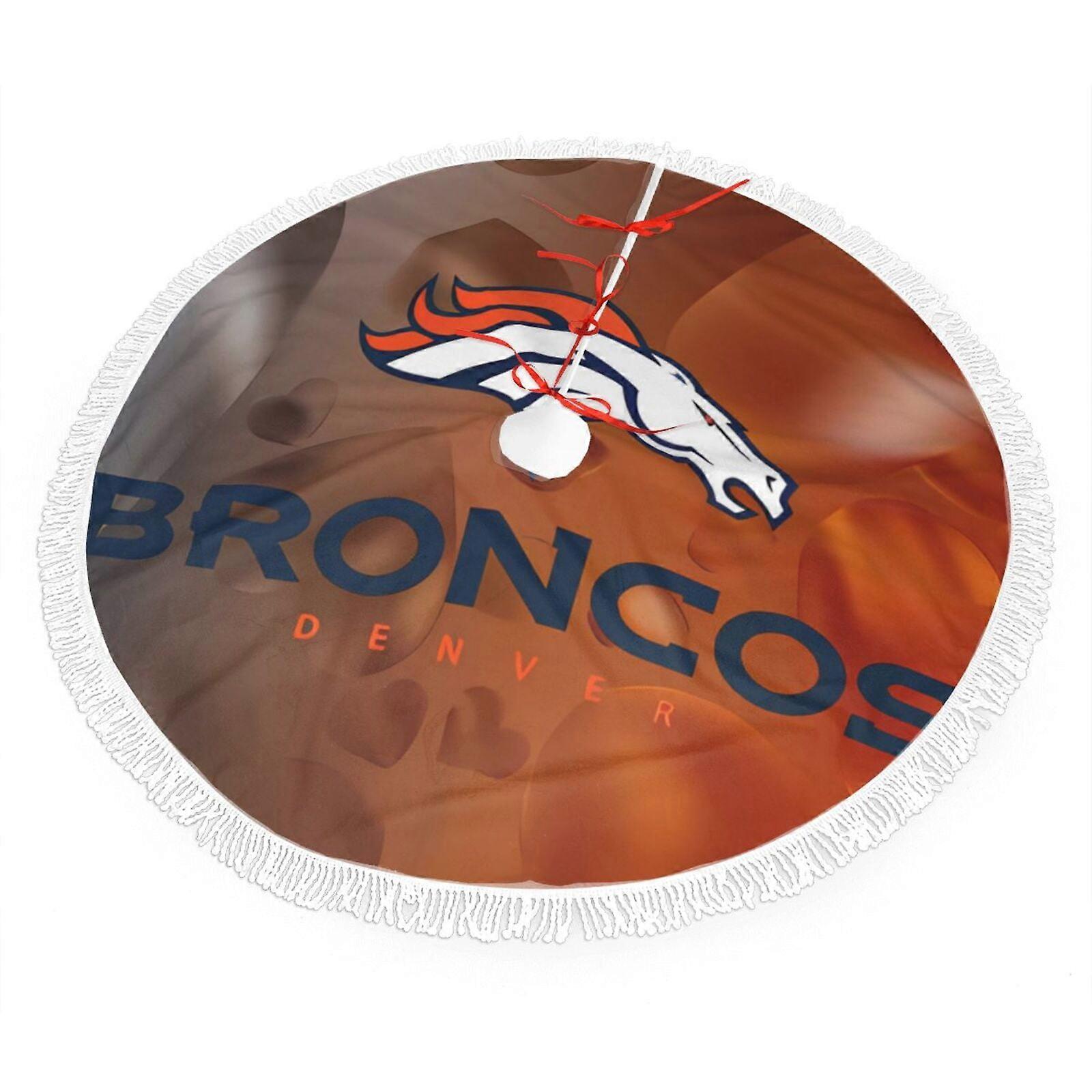 Broncos Christmas Tree Skirt 30" 36" 48", Football Team Color Plush Decoration, Easy to Install, Great Gift for Fans
