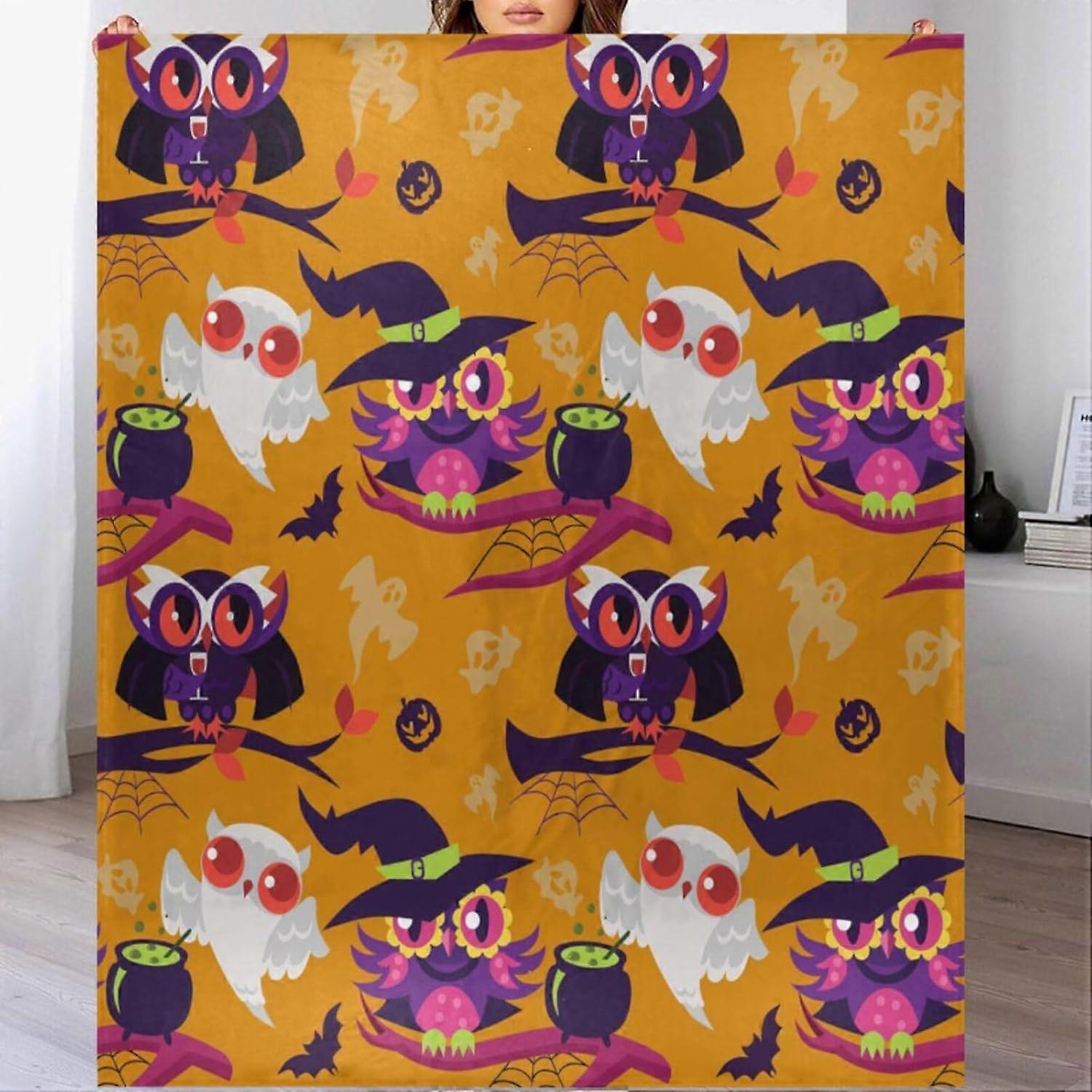 Halloween Owls Purple Throw Blanket 50x60" Soft Cozy Flannel Fleece, Lightweight Warm Fuzzy Blanket for Couch, Bed, Sofa Chair