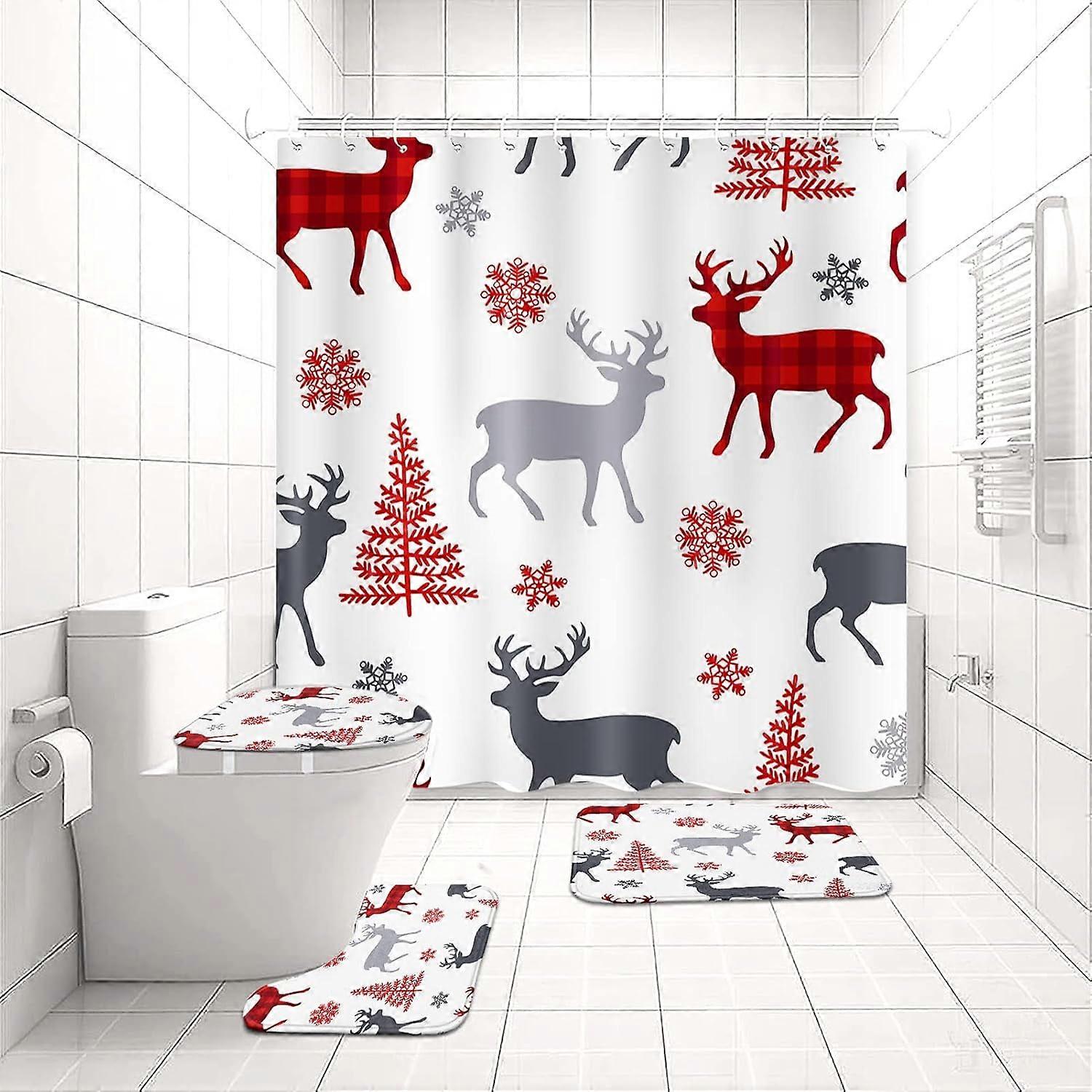 Christmas Trees Bathroom Set 4 Pcs with Shower Curtain, Rugs & Accessories, compatible with Christmas Forest Decor