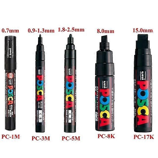 Uni Posca Markers Marcadores PC-1/3/5M Acrylic Permanent Graffiti Paint Pen Art Supplies For Rock Metal Leather Ceramic Glass 5pcs Black(5 Sizes)