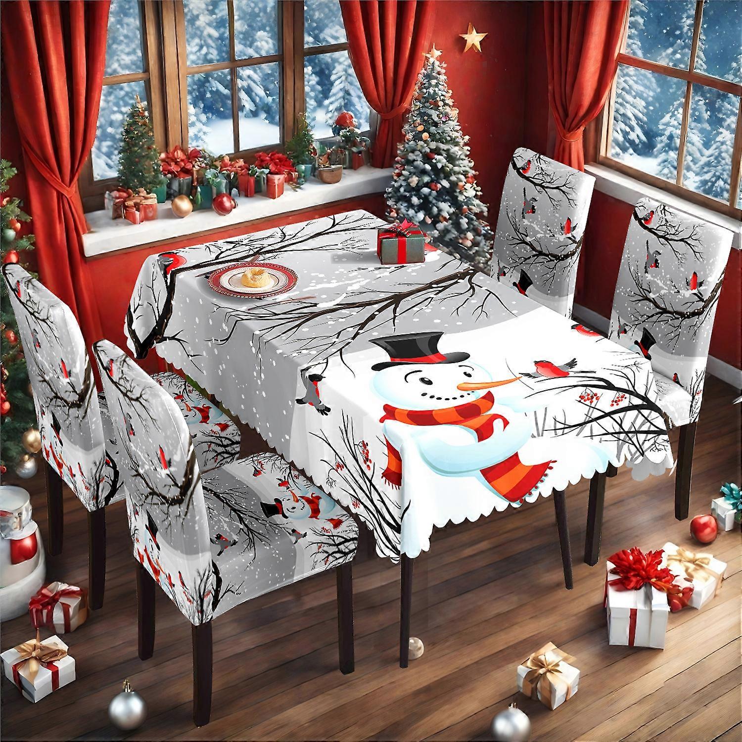 Christmas Retro Snowman Tablecloth Print Christmas Tablecloth Chair Cover Set TC-165 Set (140*210cm Waterproof Tablecloth + 4 Chair Covers)