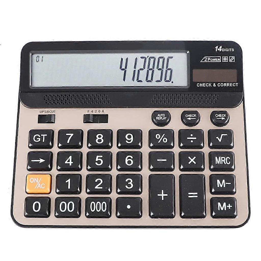 Apooke Desktop Calculator 14 Digit with Large LCD Display and Sensitive Button Solar and Battery Dual Power Standard Function