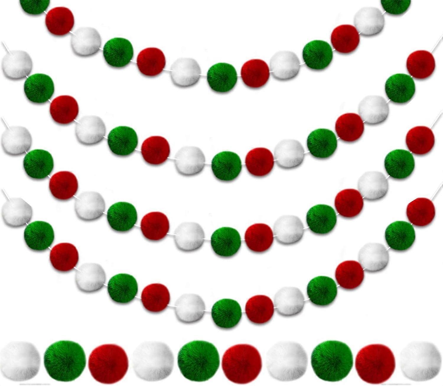 4 Pcs Christmas Felt Ball Garland, Colorful Pom Pom Decor for Tree, Winter Holiday Home Decor