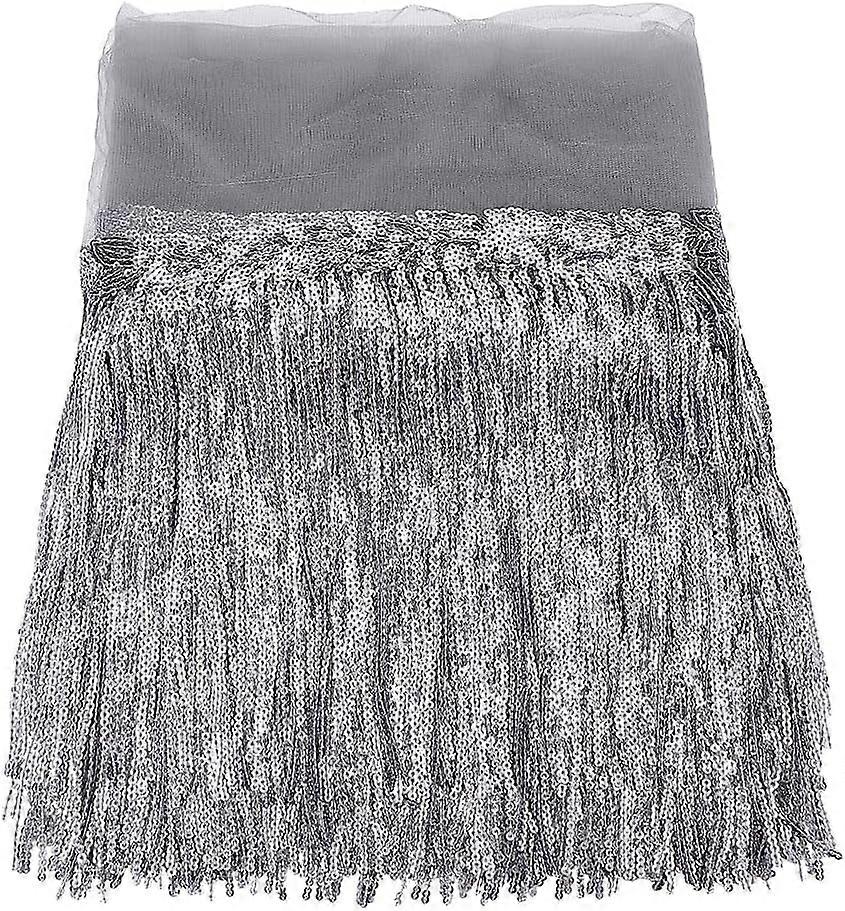 10 Yards Gray Sequins Fringe Trim 9.8" PVC Tassel for DIY Craft, Costumes, Garment, Curtain, Home Decor