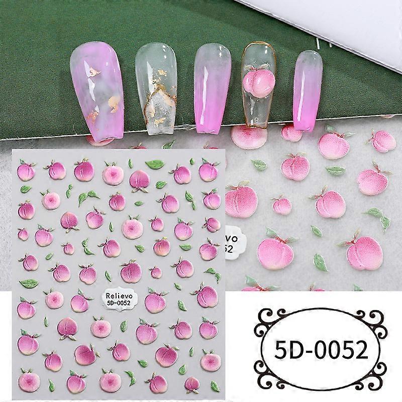 New DIY Fruit Nail Art Stickers Embossed 5D Strawberry Peach Avocado Nail Stickers INS Style Small Decals 5D-005285*100mm Bare Chip