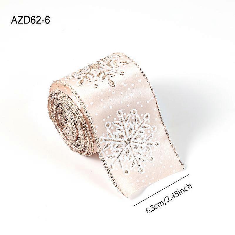 Champagne color Christmas ribbon gift box bow tie ribbon silk ribbon Christmas decoration supplies 6.3CM snowflake ribbon / 2 meters