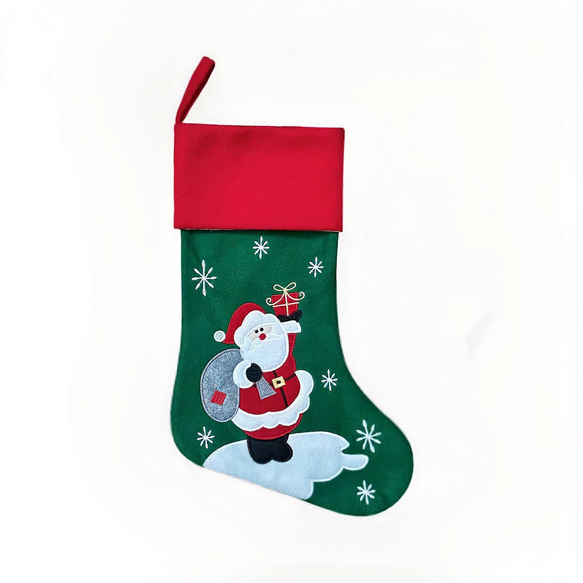 2025 Christmas socks gift bag linen Santa Claus embroidery Christmas socks Christmas gifts Christmas pendants Santa Claus style [H17