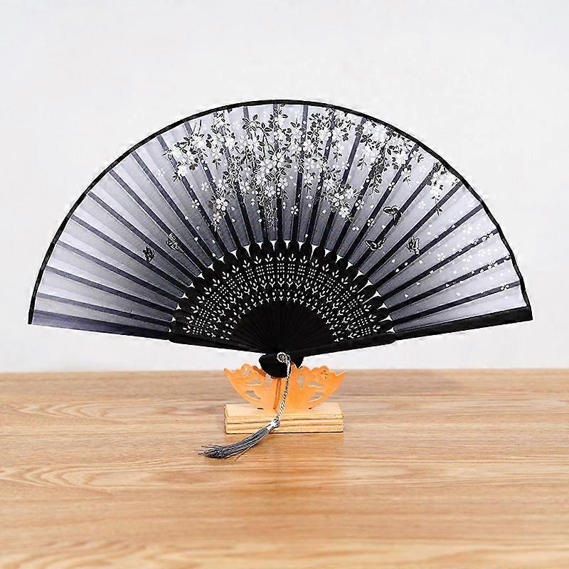 pieces of folding fans, bamboo tassel fan, Chinese style folding fan, vintage silk folding fan, vintage double layer fan bag