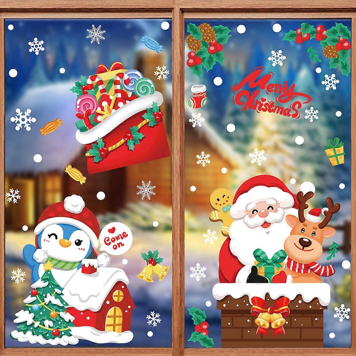 Christmas decoration glass stickers Santa Claus gift snowman elk reindeer cartoon window stickers door stickers static set XC062+69