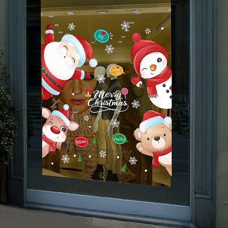 Christmas decoration stickers for window glass doors, Santa Claus, snowman and elk, self-adhesive and removable holiday stickers, size 60*90cm