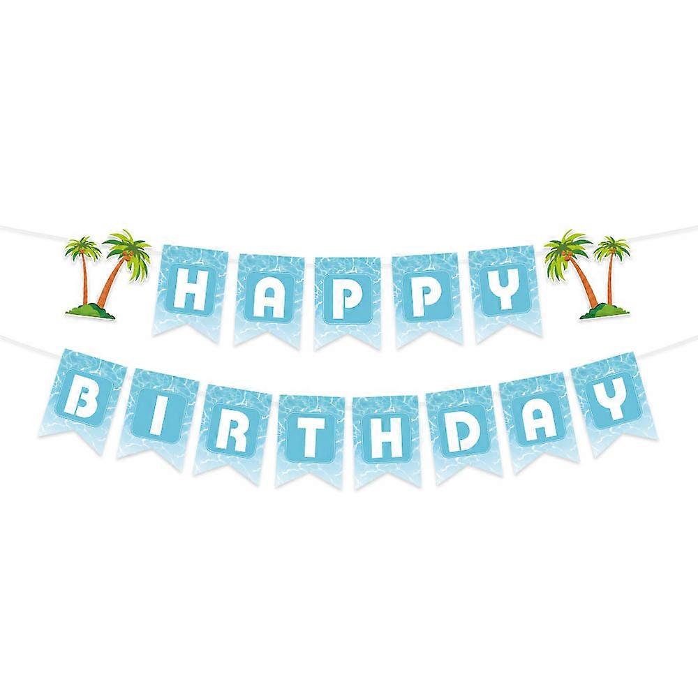 New summer birthday decoration pull flag summer scene layout birthday pull flag banner Hawaiian party layout HAPPY BIRTHDAY