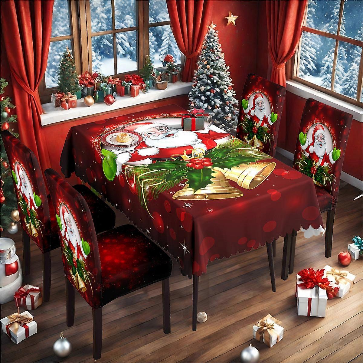 Popular Christmas bell tablecloth waterproof Christmas tablecloth chair cover set TC-7 set (140*210cm waterproof tablecloth + 4 chair covers)