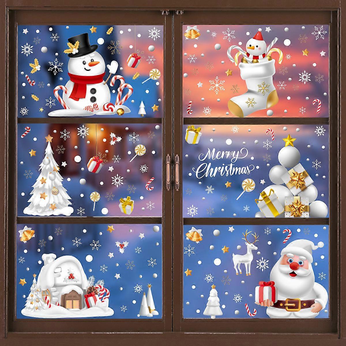 Christmas Decoration Candy Cane Igloo Snowflake Static Sticker Santa Claus Elk Snowman Glass Sticker [6 Combinations] BQ (432-434) + (436-438)