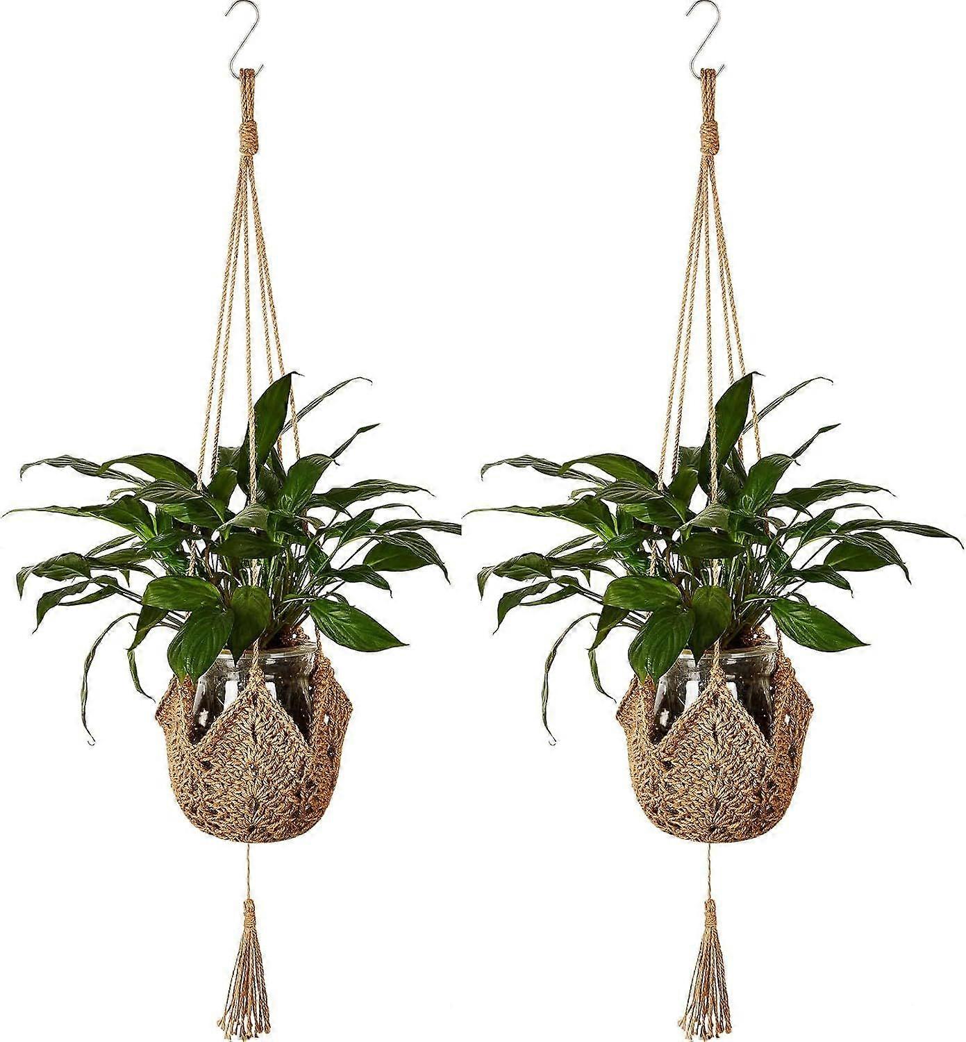 Package Contents: You will receive two macrame plant hangers and two hooks. You can hang your plants wherever you like, keeping them safe from animals and saving space. Handwoven: This hanging plant hanger features a durable woven design that fits pots of all shapes and sizes. Pots not included. Easy to Hang: The woven plant basket is easy to use: simply stretch the rope to 1.5m and place the pot in the center of the hanger. It is elegant and easy to water and maintain. Indoor & Outdoor Decor: This jute plant hanger adds a bohemian touch to your home decor. Perfect for decorating a room, it will also beautify your garden or balcony. Versatile: This hanging plant stand can be hung from ceilings, walls, terraces, porches and windows, and will beautify your garden or balcony.