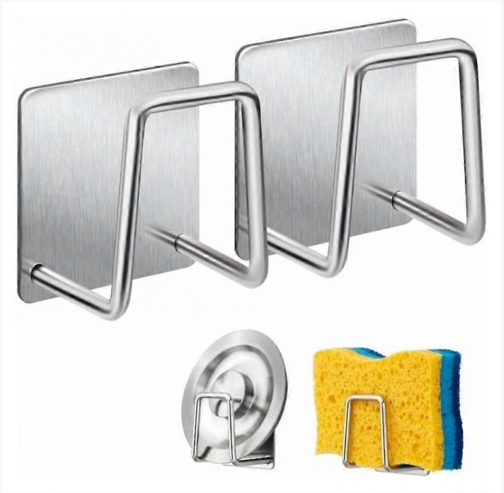 Sponge Holder - 304 Stainless Steel Dish Sponge Hook, Adhesive - Sink Accessories - Adhesive Hook, Kitchen and Bathroom Storage, Silver