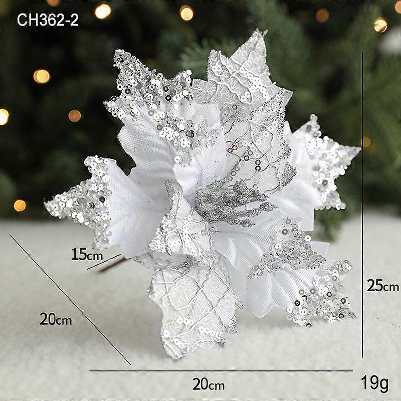Artificial flower sequin flower Christmas flower 20CM fabric flower arrangement decoration ornaments Christmas wreath rattan decoration silver