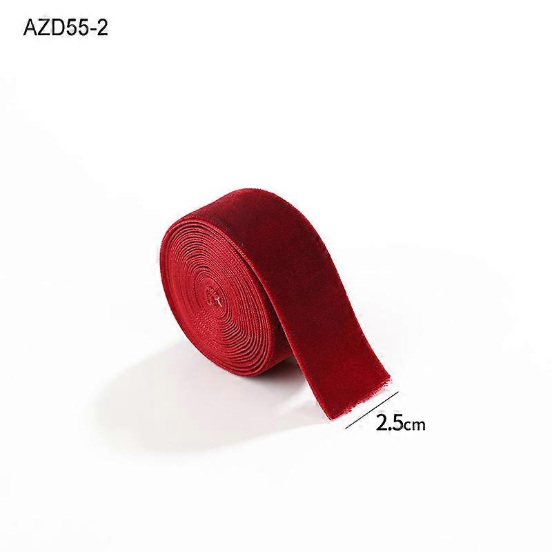 New Red Flannel Christmas Ribbon White Overlock Handmade Bow Gift Wrapping Ribbon Atmosphere Supplies 2.5CM Wine Red Flannel Ribbon (2M/Roll)
