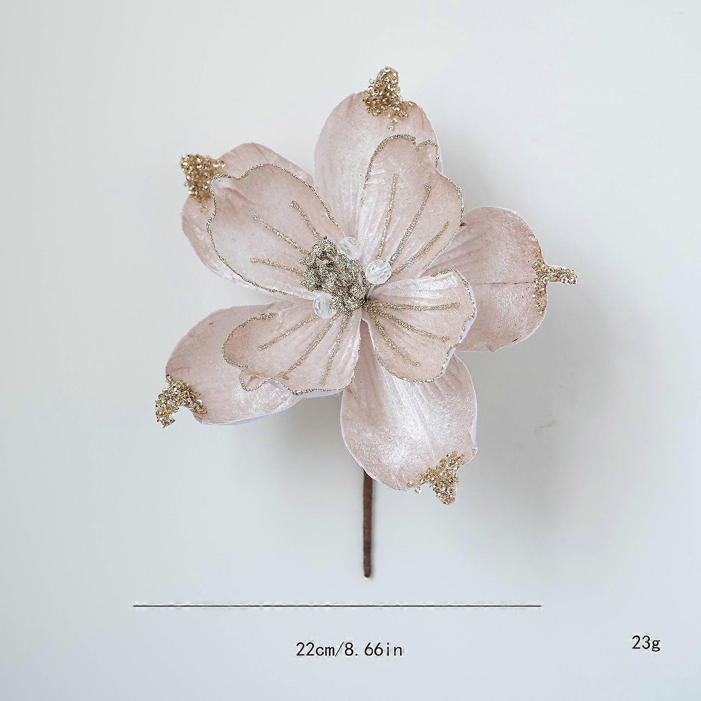 New Christmas decorations artificial flowers Christmas flowers 22cm cloth sticky powder sequins simulation magnolia champagne color