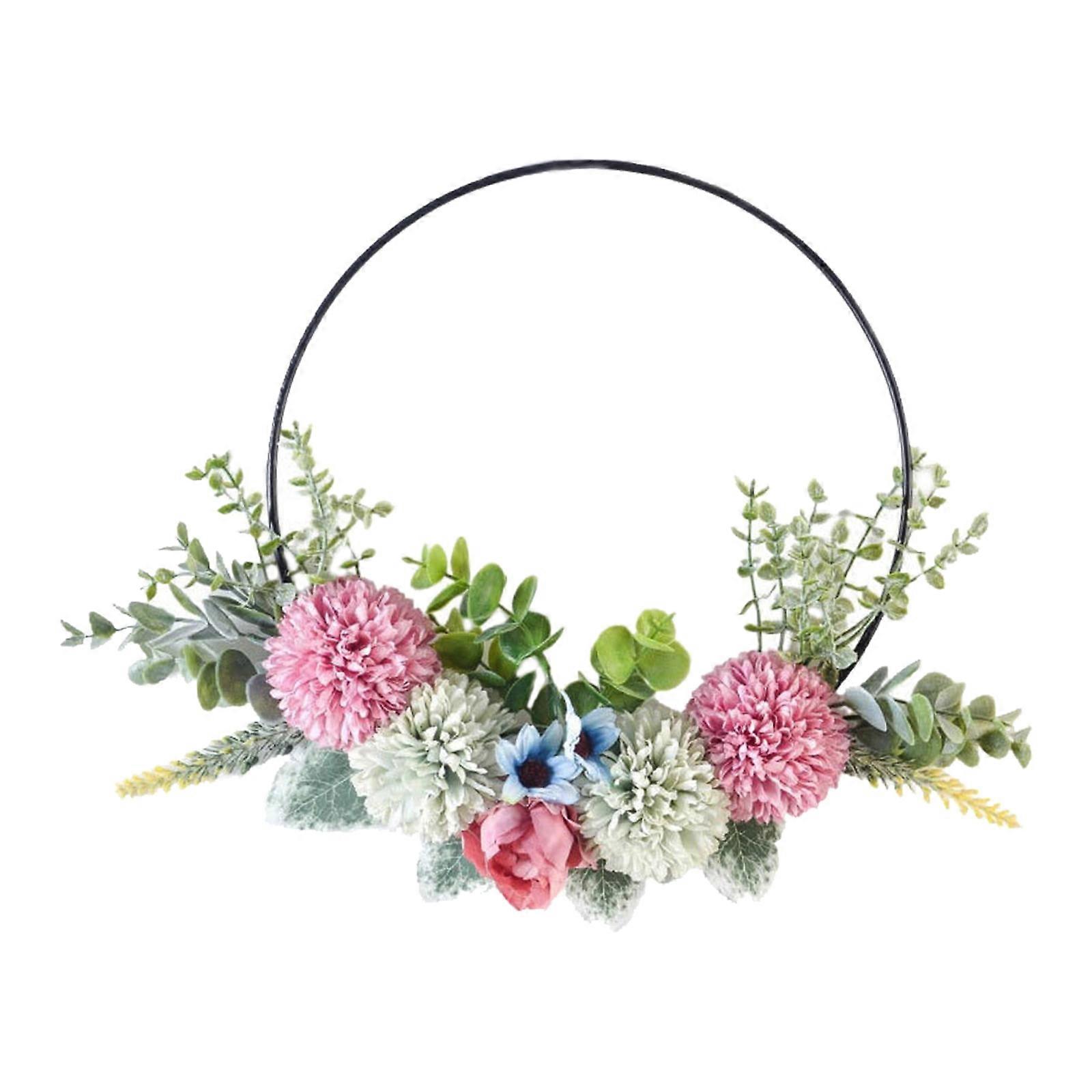 GadgetVLot Artificial Flower Wall Hanging Hoop Wreath Vivid Metal Silk Home Decor Garland